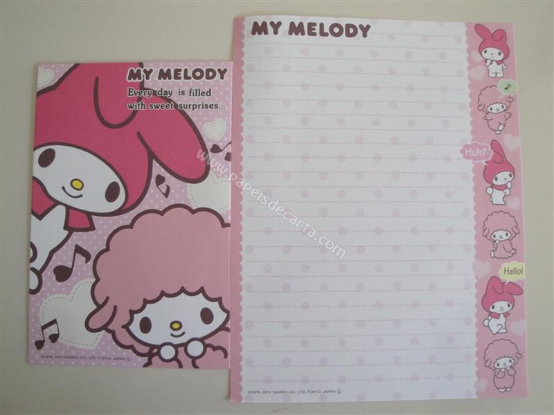 Conjunto importado, de papel de carta com 1 folha e 1 envelope da My Melody.