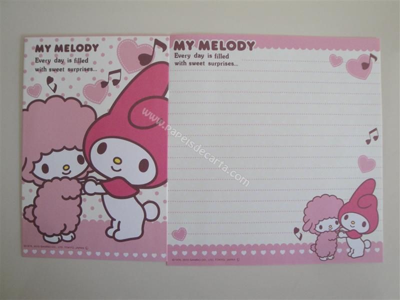 Conjunto importado, de papel de carta com 1 folha e 1 envelope da My Melody.