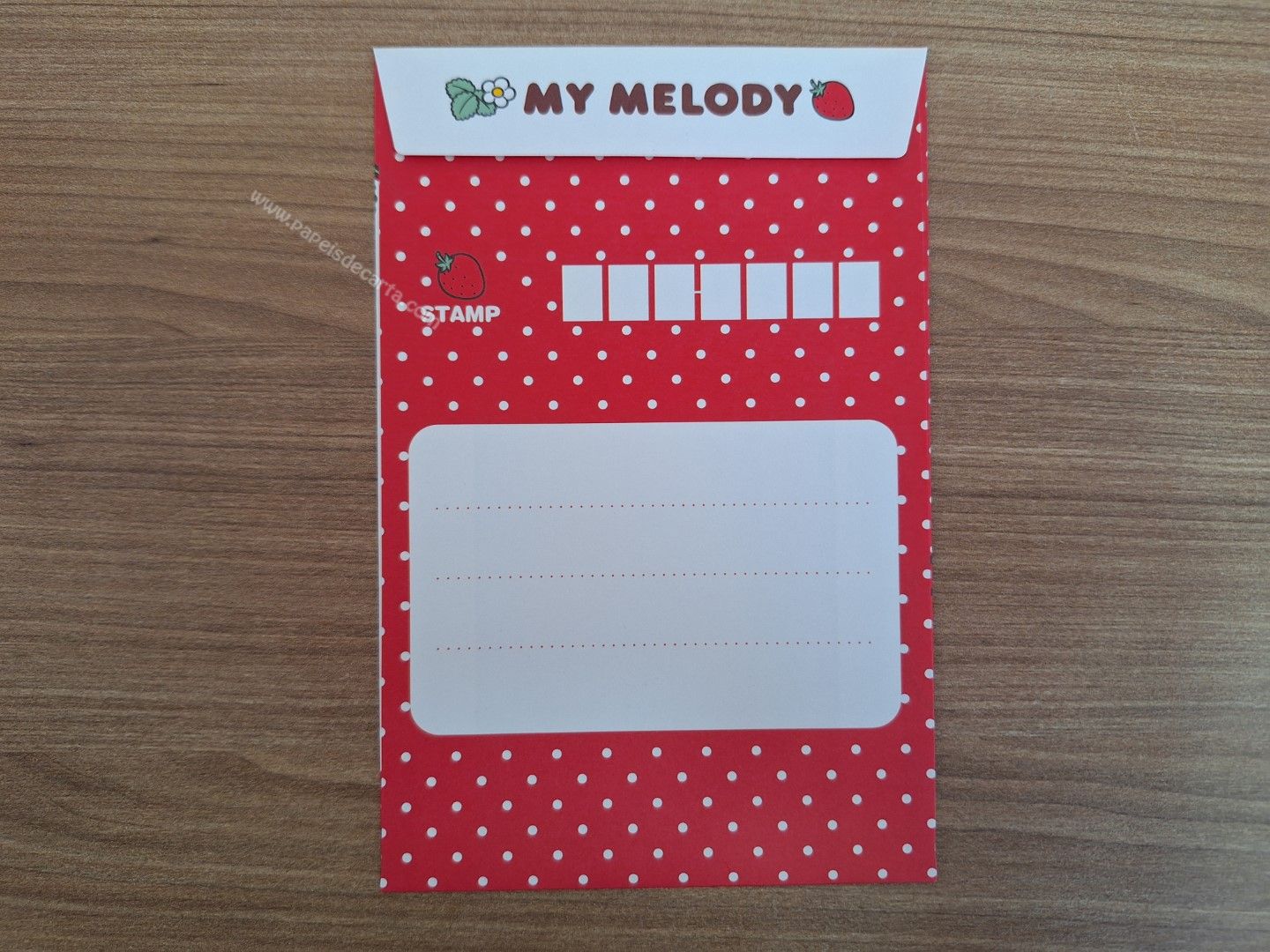 Papel de carta importado da My Melody com 1 folha e 1 envelope.