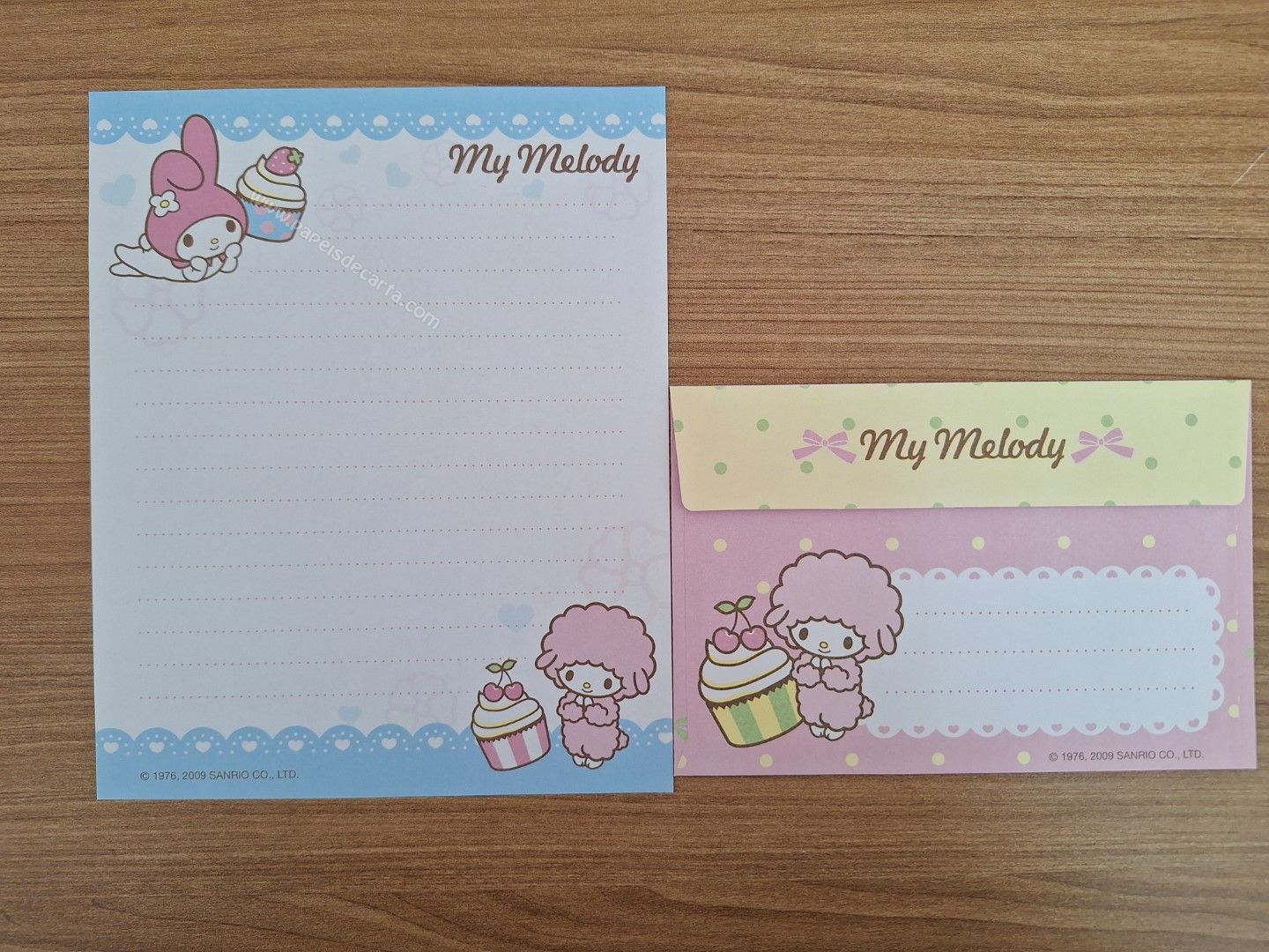 Papel de carta importado da My Melody com 1 folha e 1 envelope.