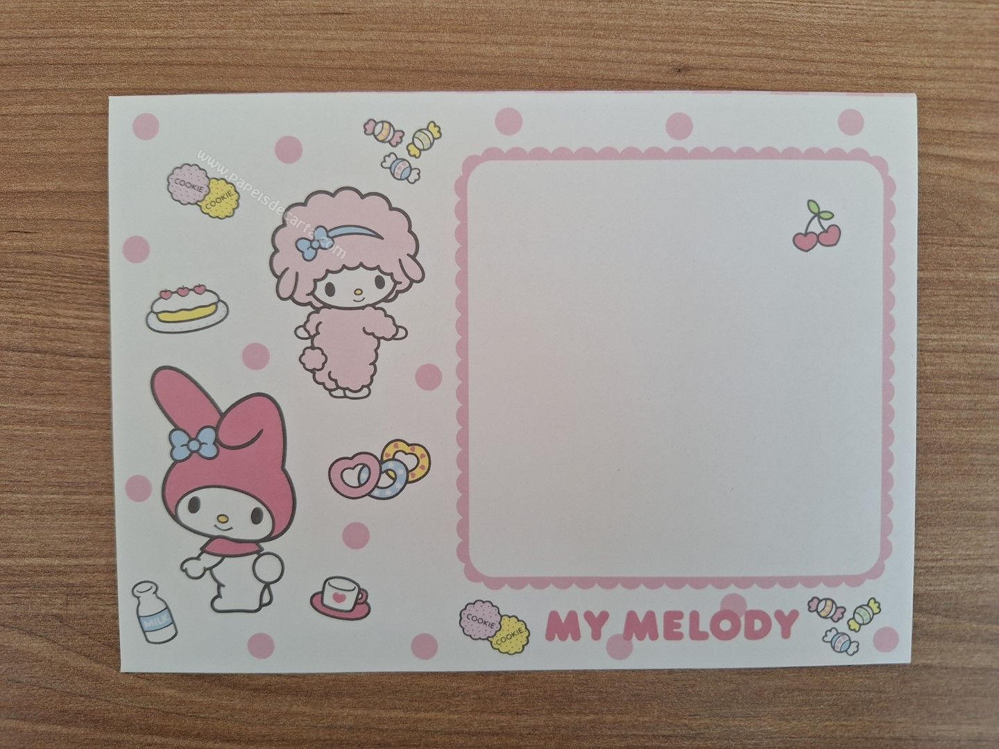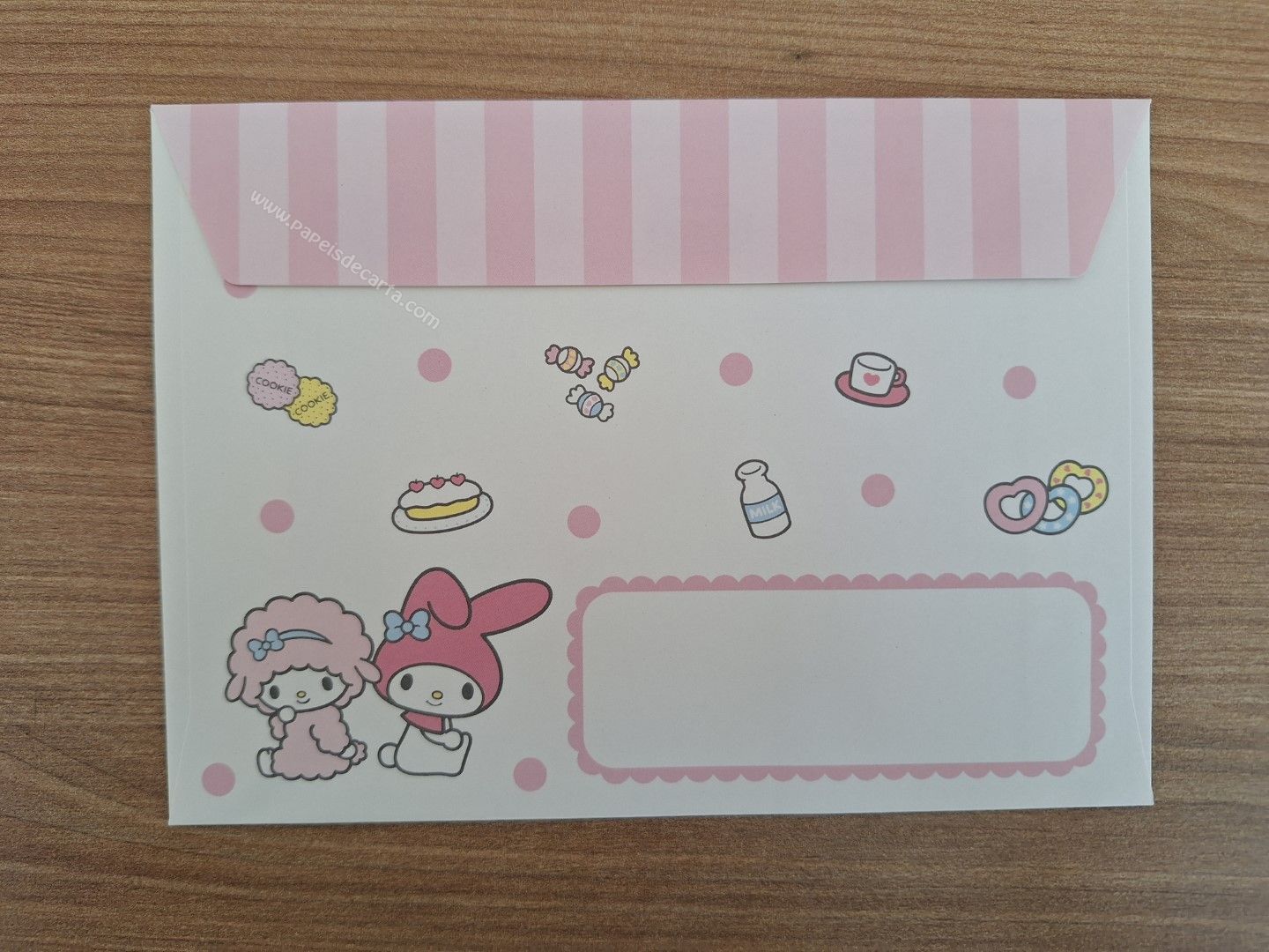 Papel de carta importado da My Melody com 1 folha e 1 envelope.