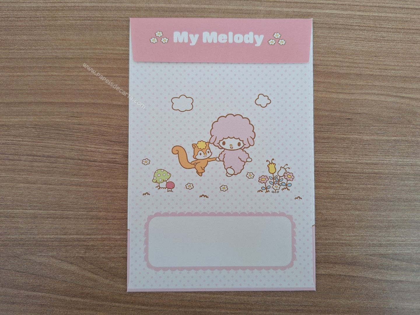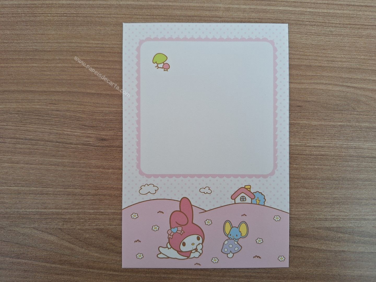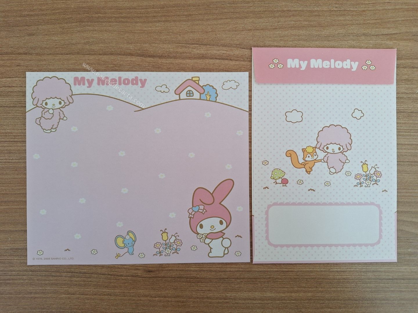 Papel de carta importado da My Melody com 1 folha e 1 envelope.
