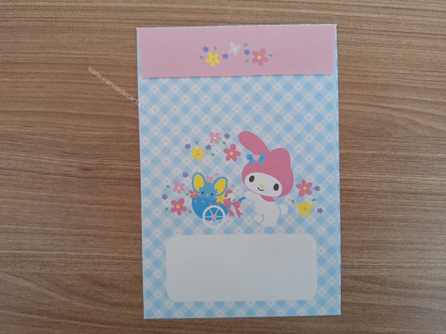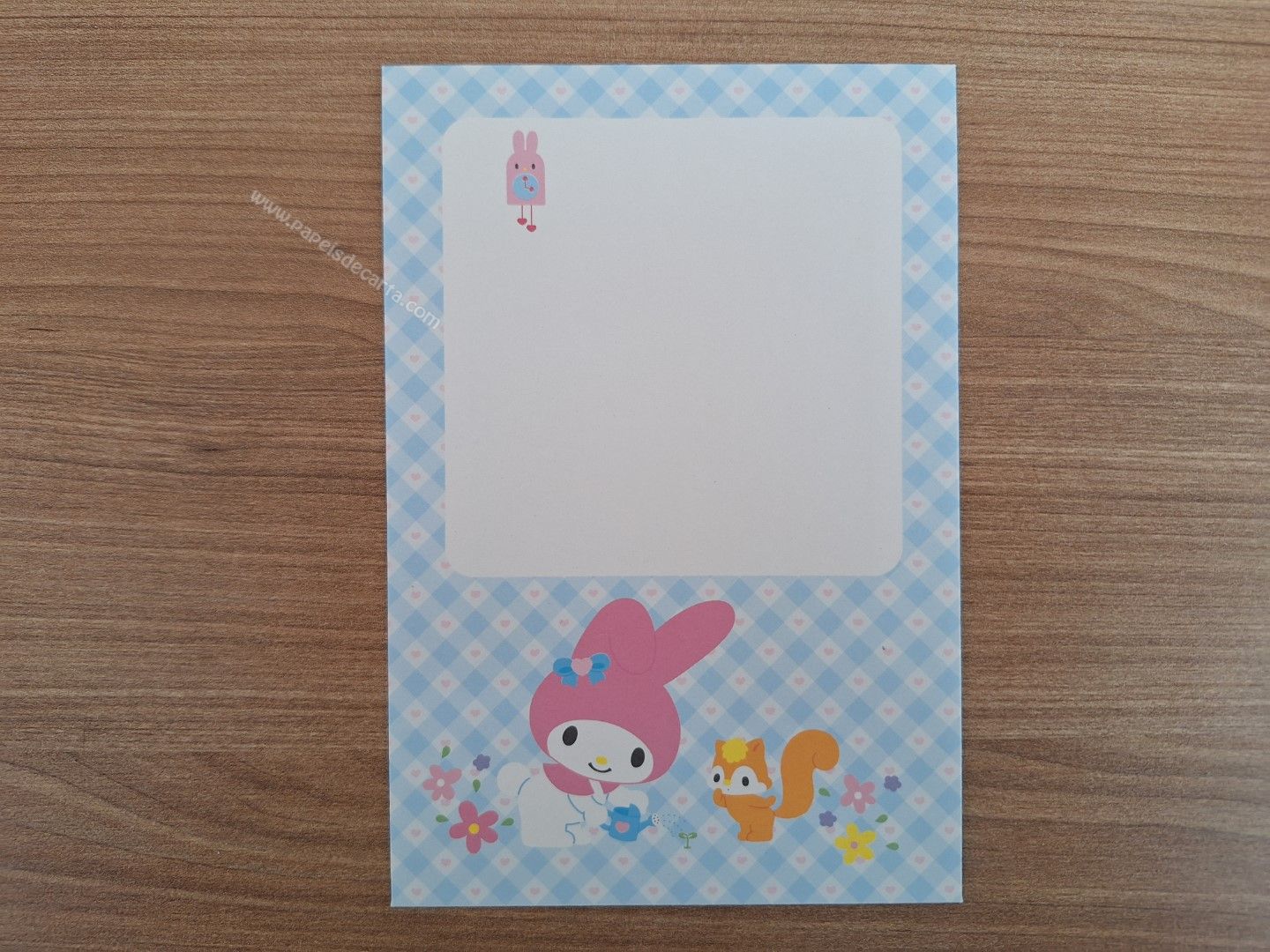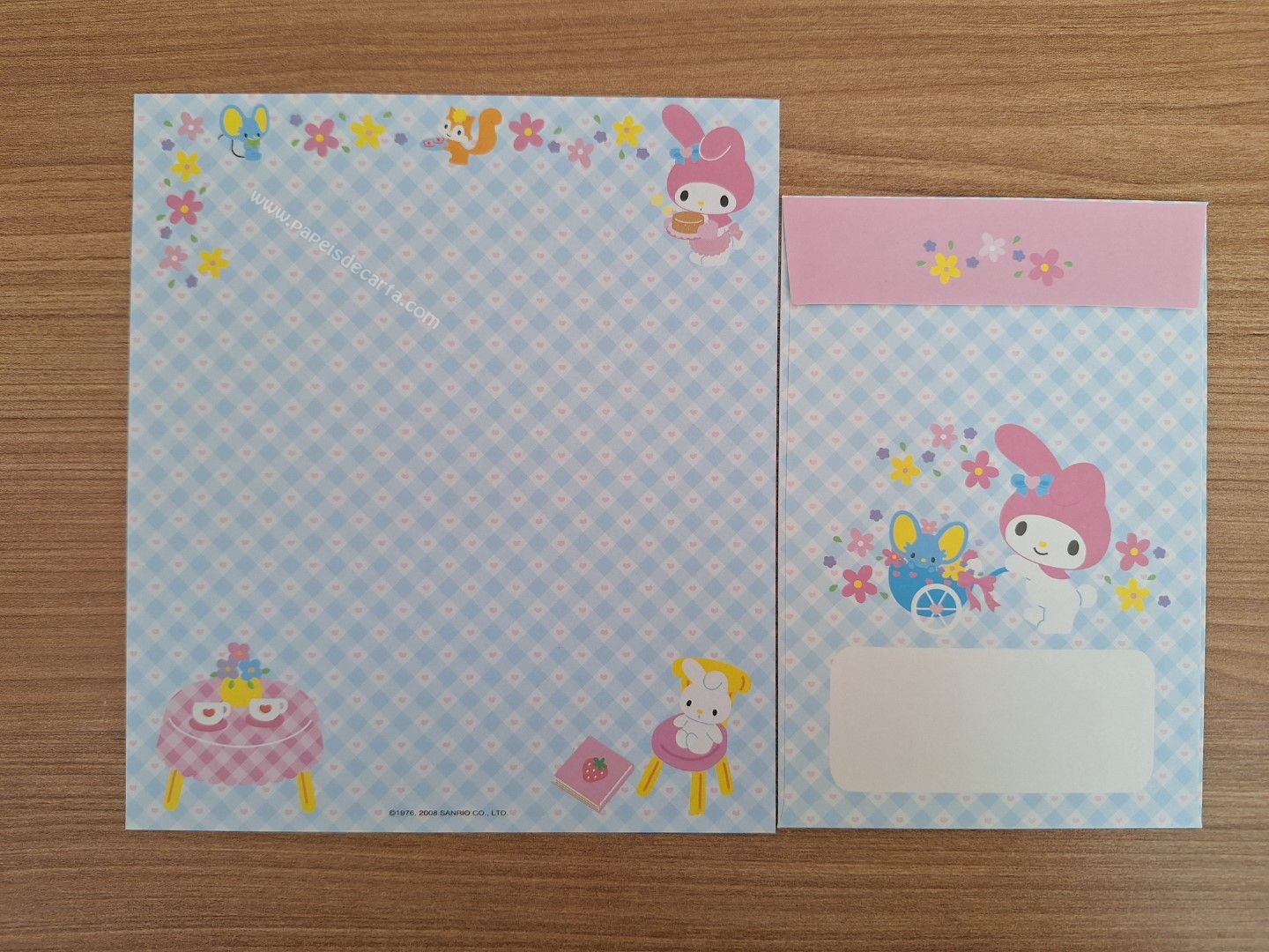 Papel de carta importado da My Melody com 1 folha e 1 envelope.
