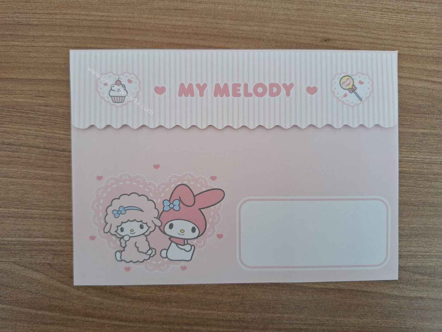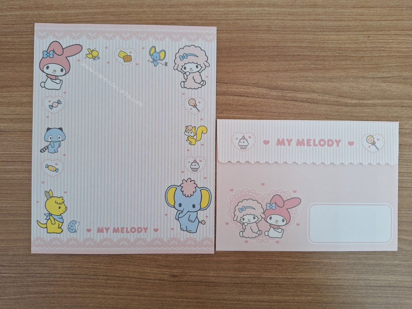 Papel de carta importado da My Melody com 1 folha e 1 envelope.