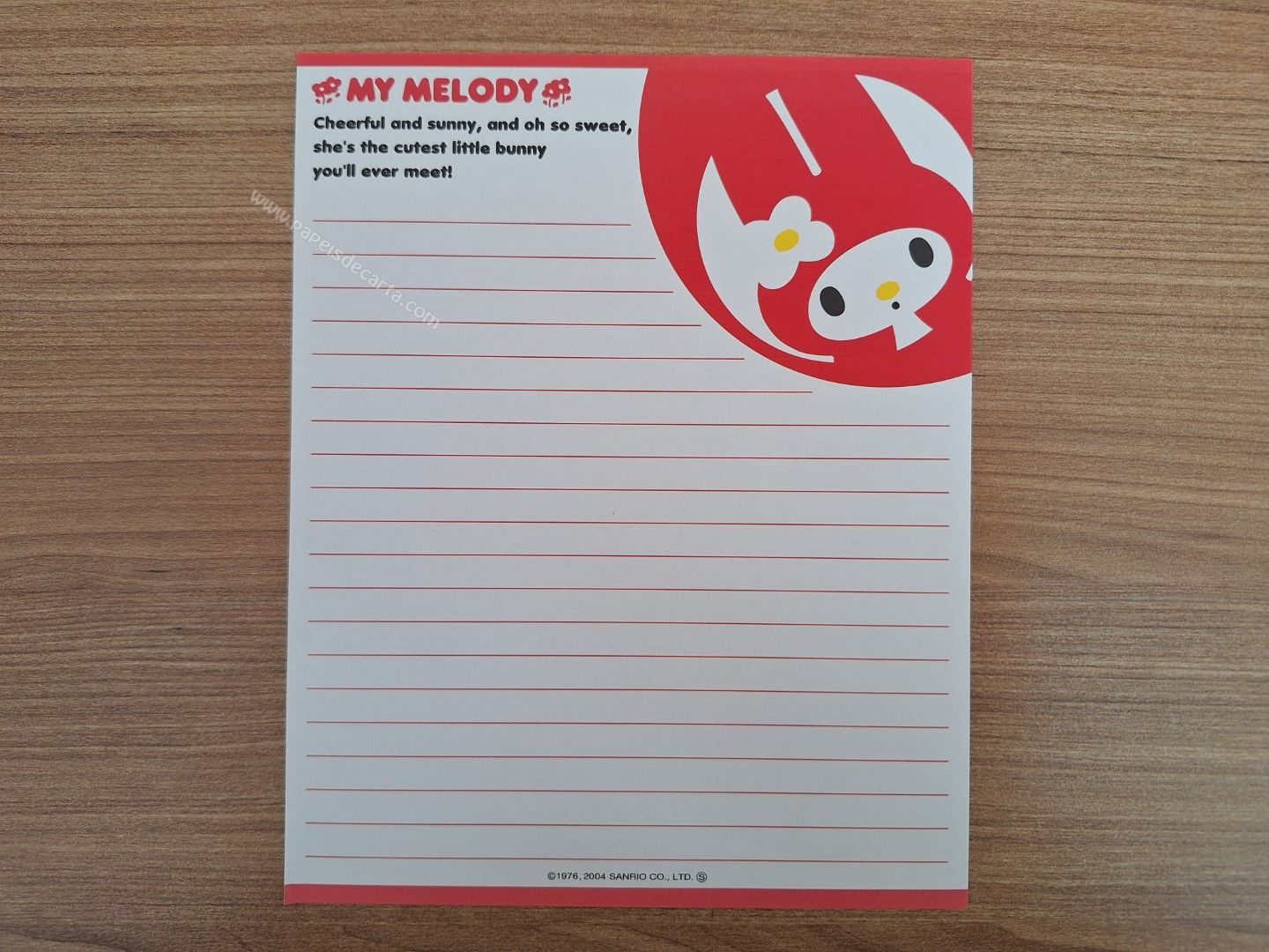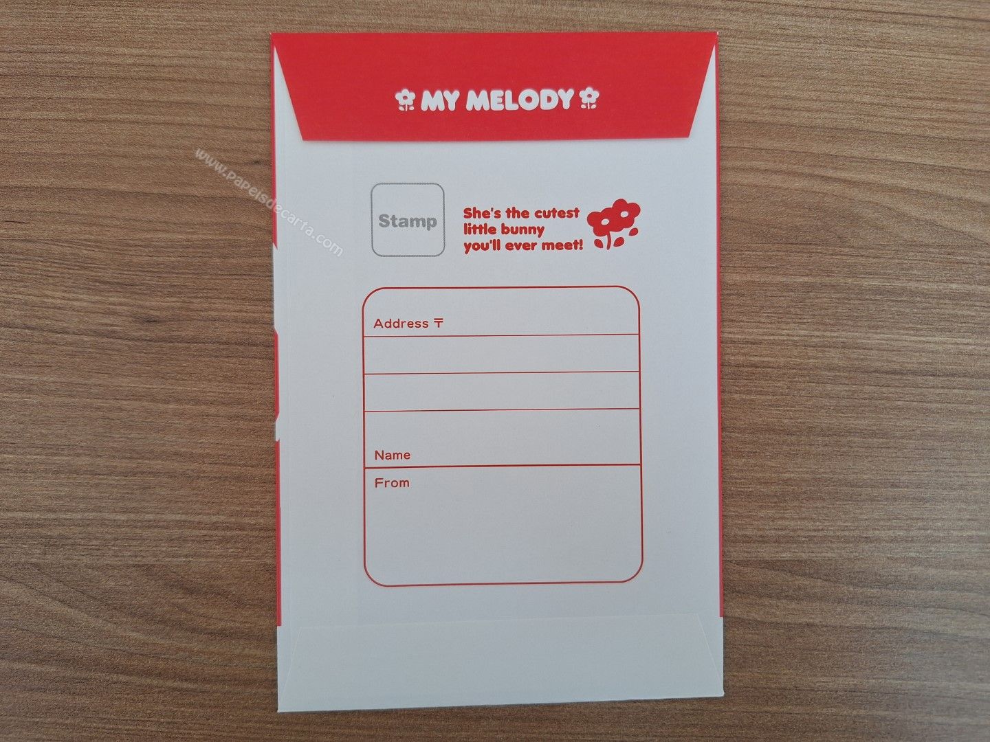 Papel de carta importado da My Melody com 1 folha e 1 envelope.