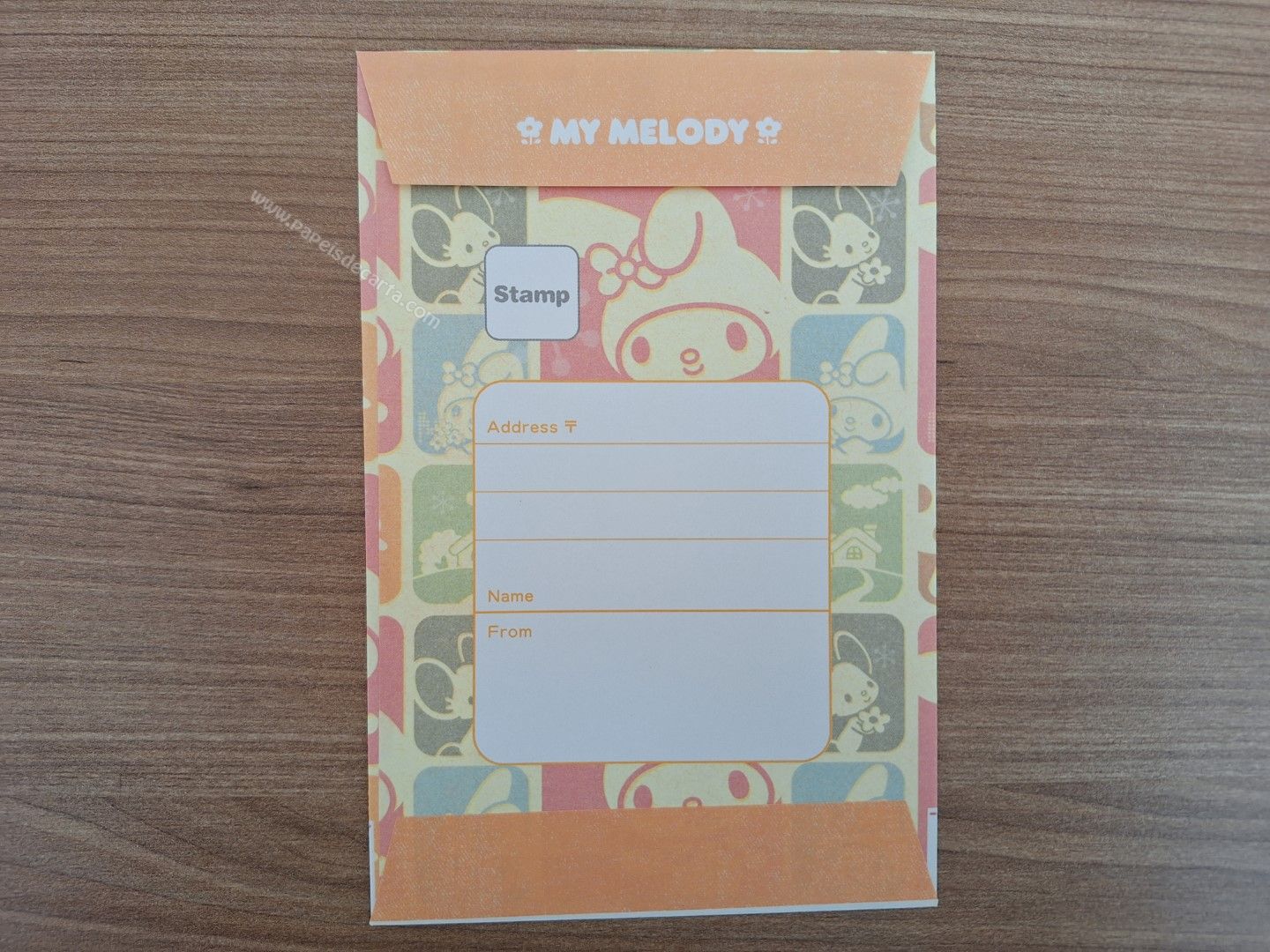 Papel de carta importado da My Melody com 1 folha e 1 envelope.