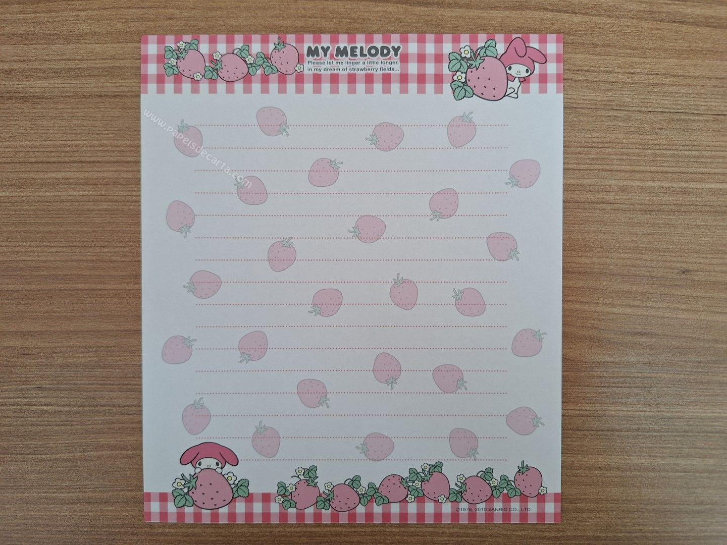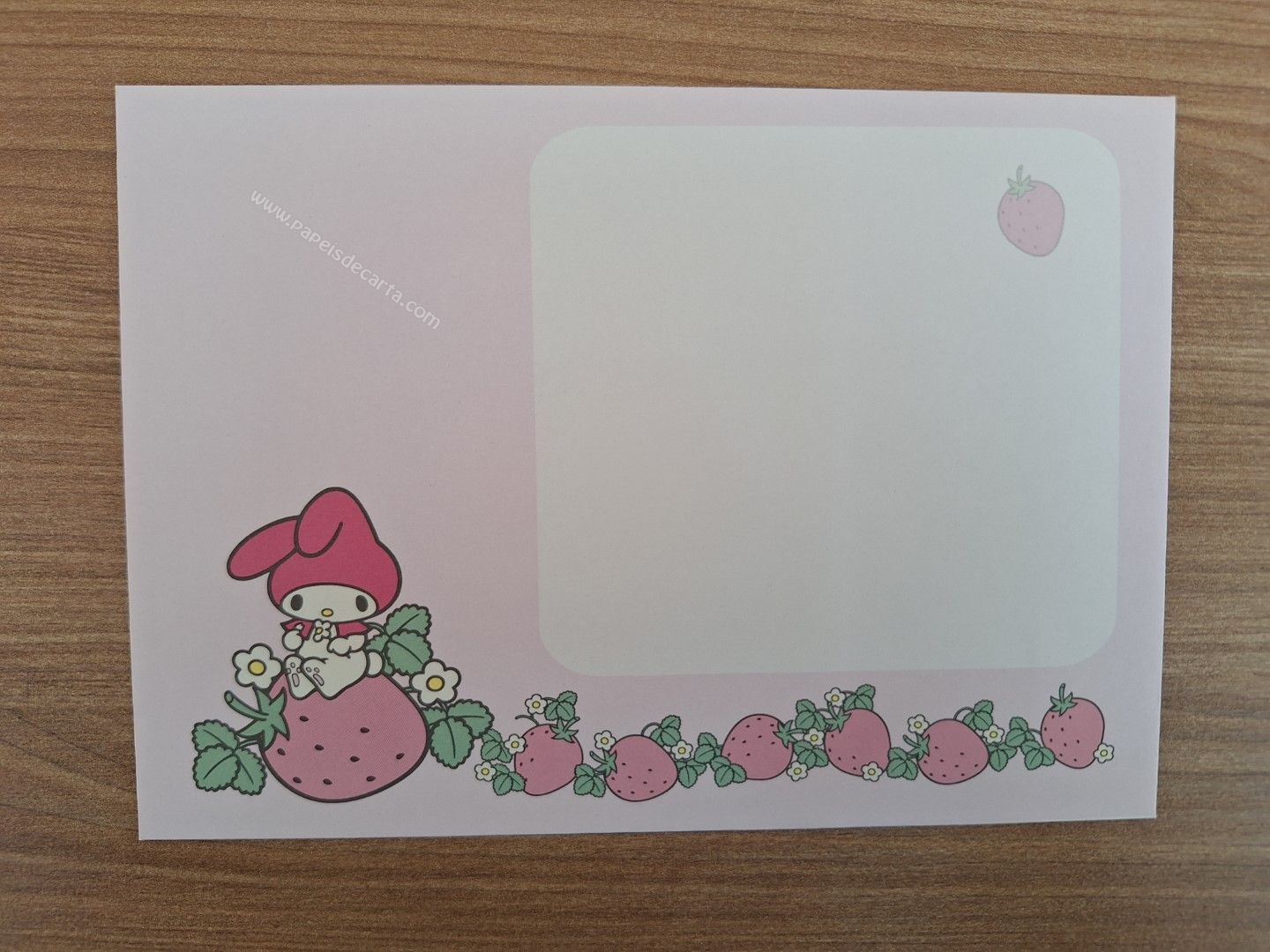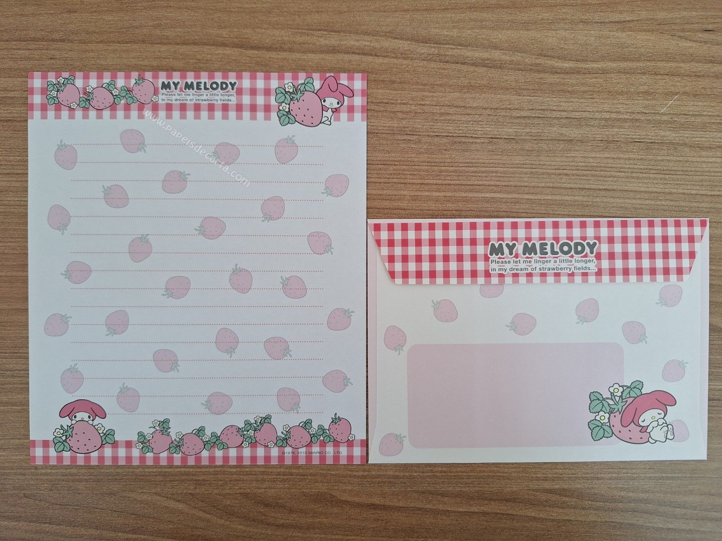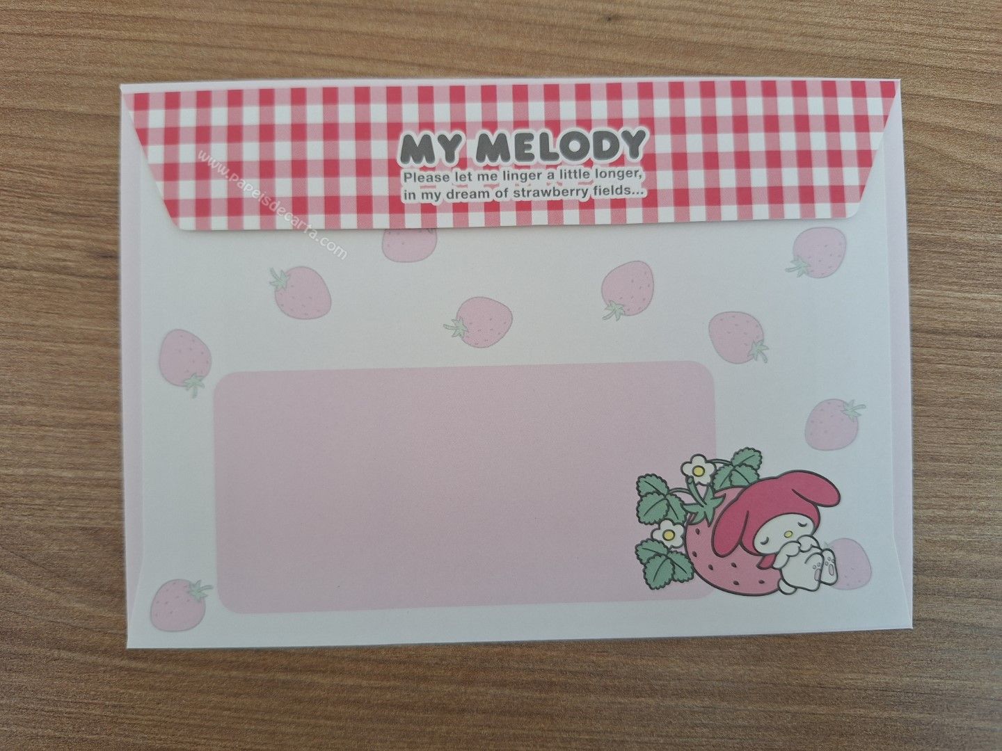 Papel de carta importado da My Melody com 1 folha e 1 envelope.