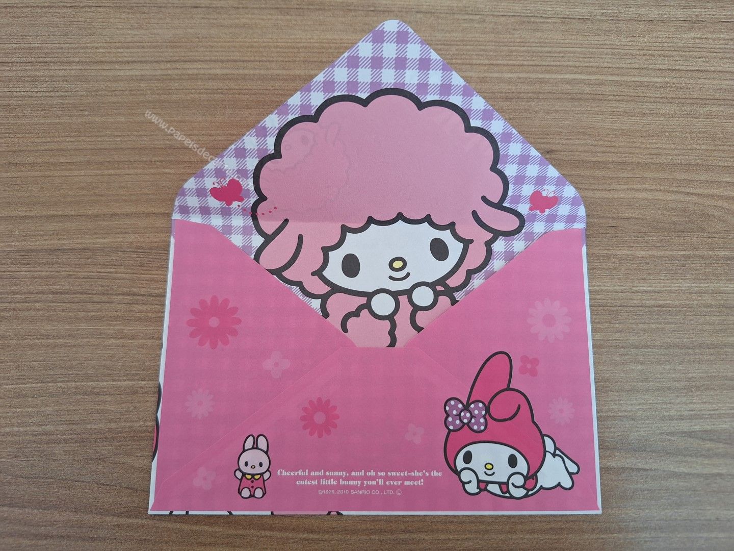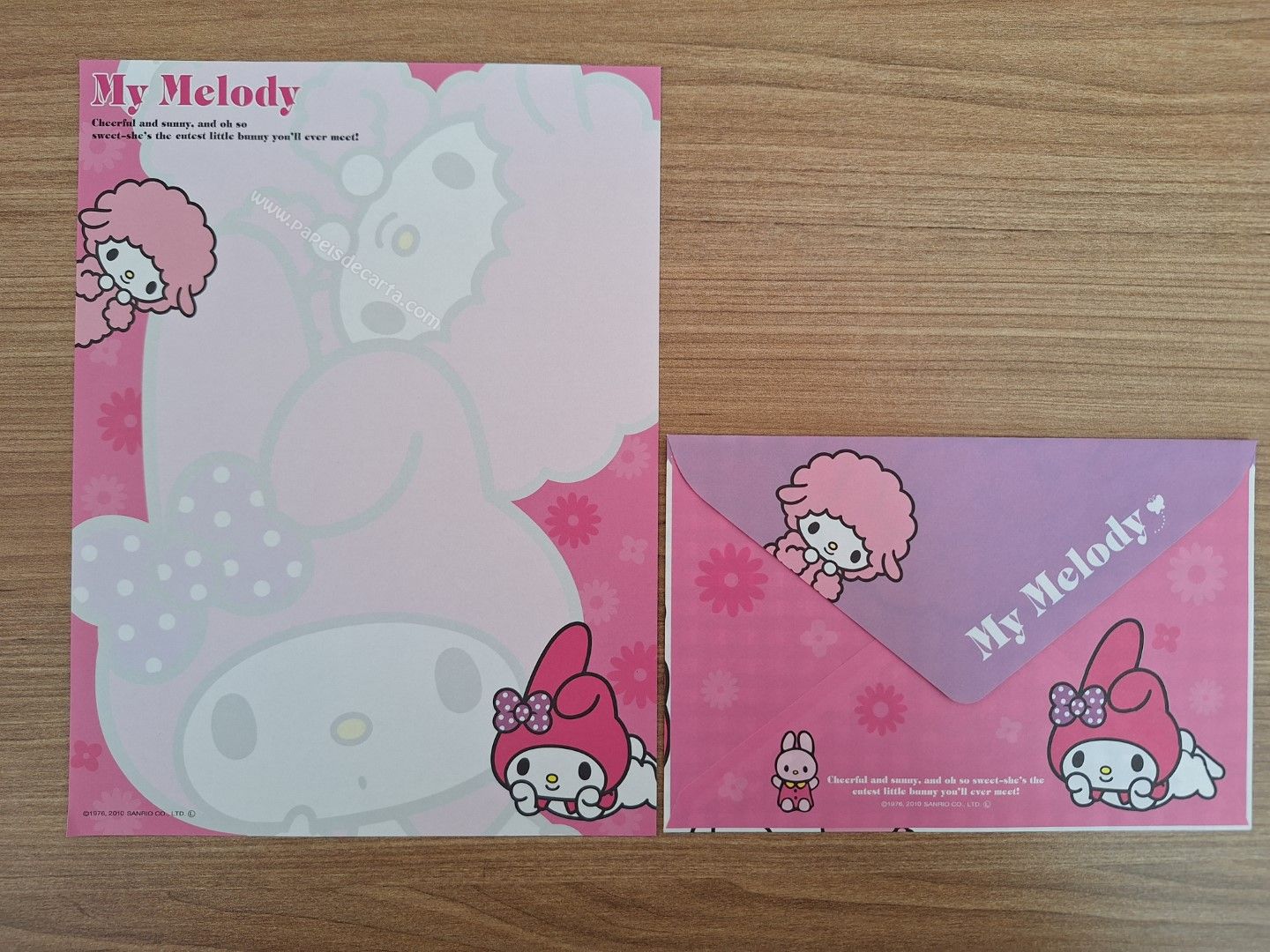 Papel de carta importado da My Melody com 1 folha e 1 envelope.