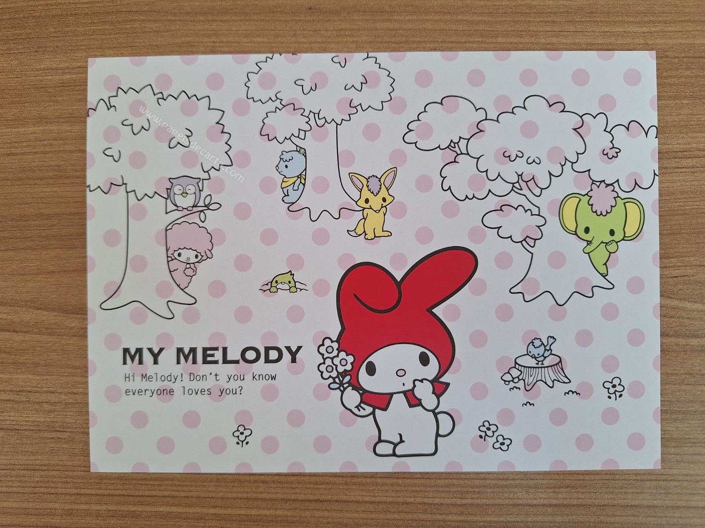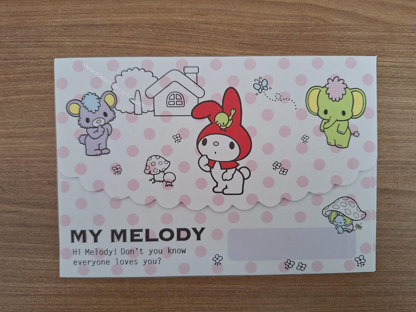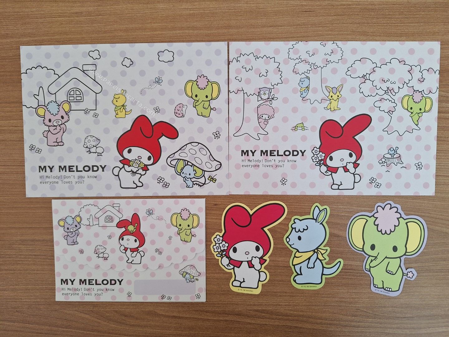 Papel de carta importado da My Melody com 2 folhas e 1 envelope e 3 memos.