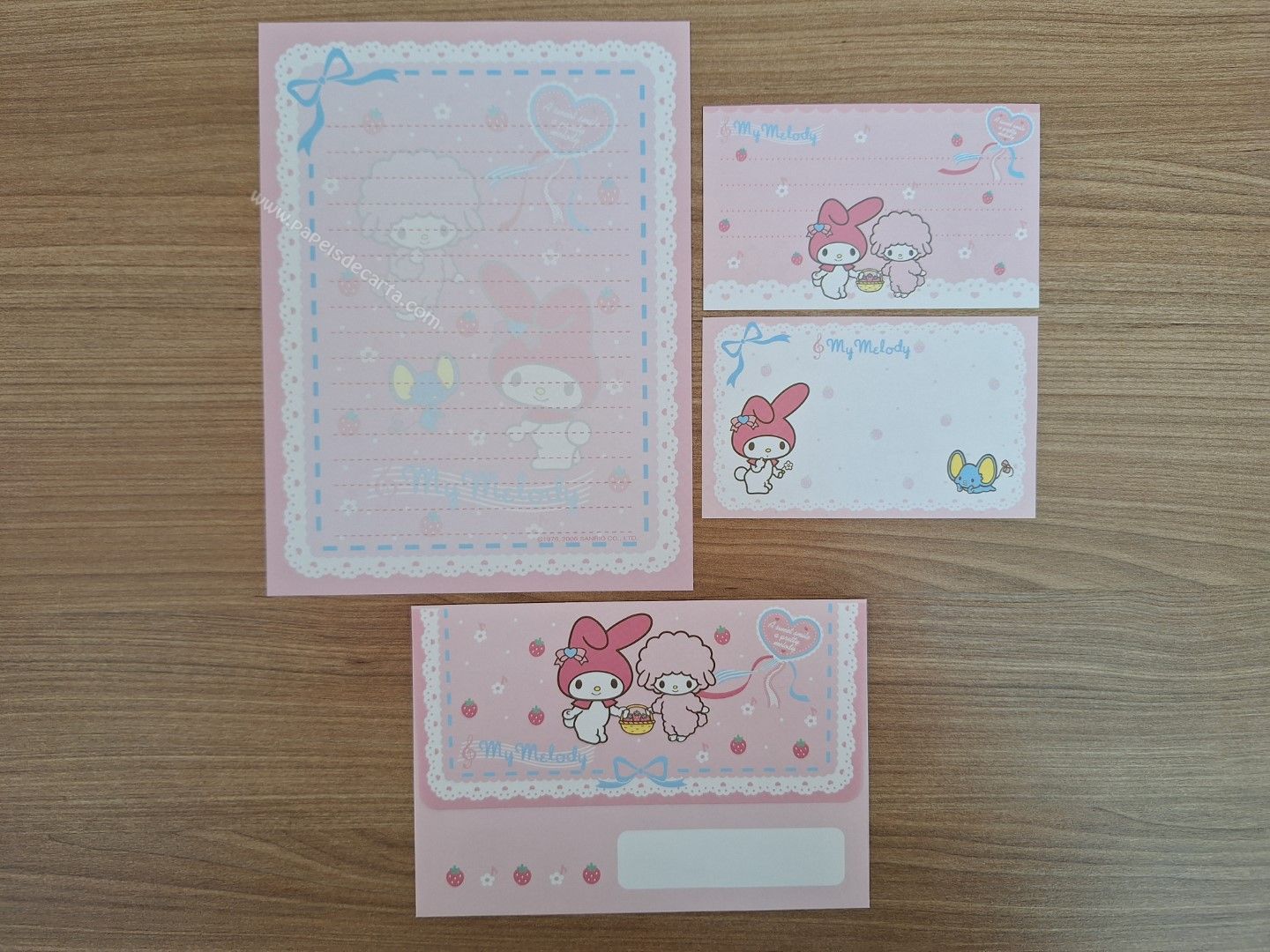 Papel de carta importado da My Melody com 1 folha e 1 envelope e 2 memos.