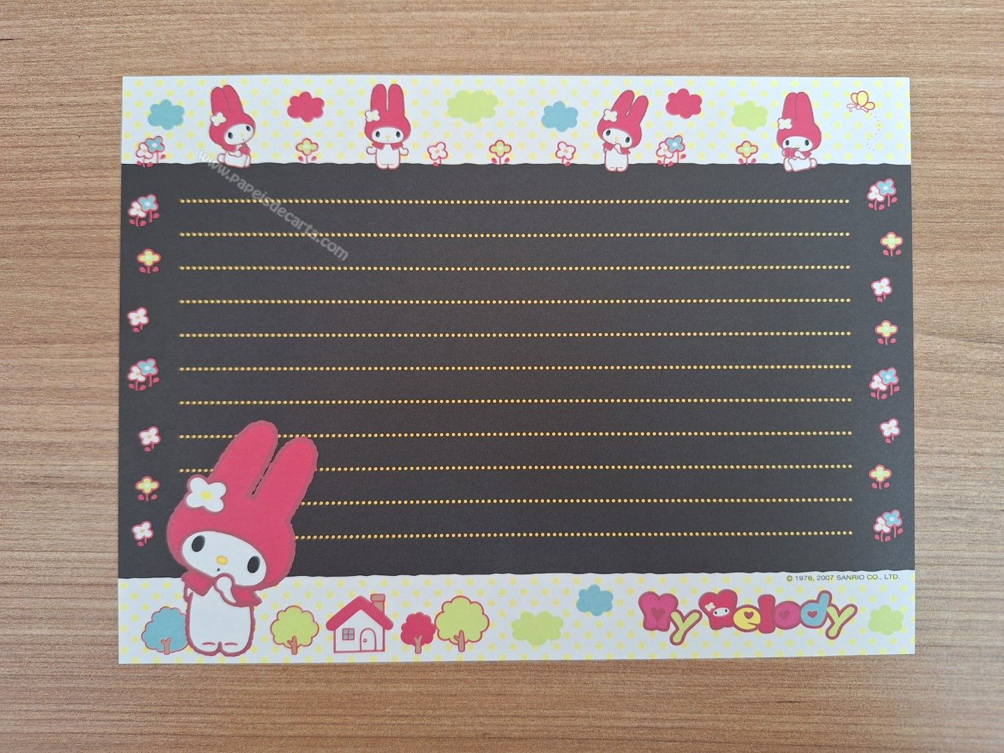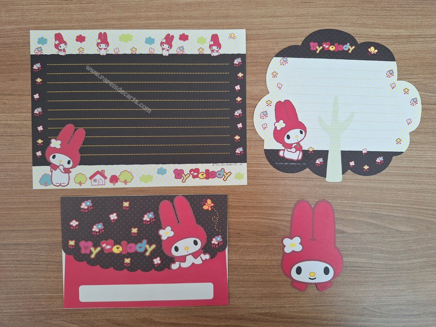 Papel de carta importado da My Melody com 1 folha e 1 envelope e 2 memos.