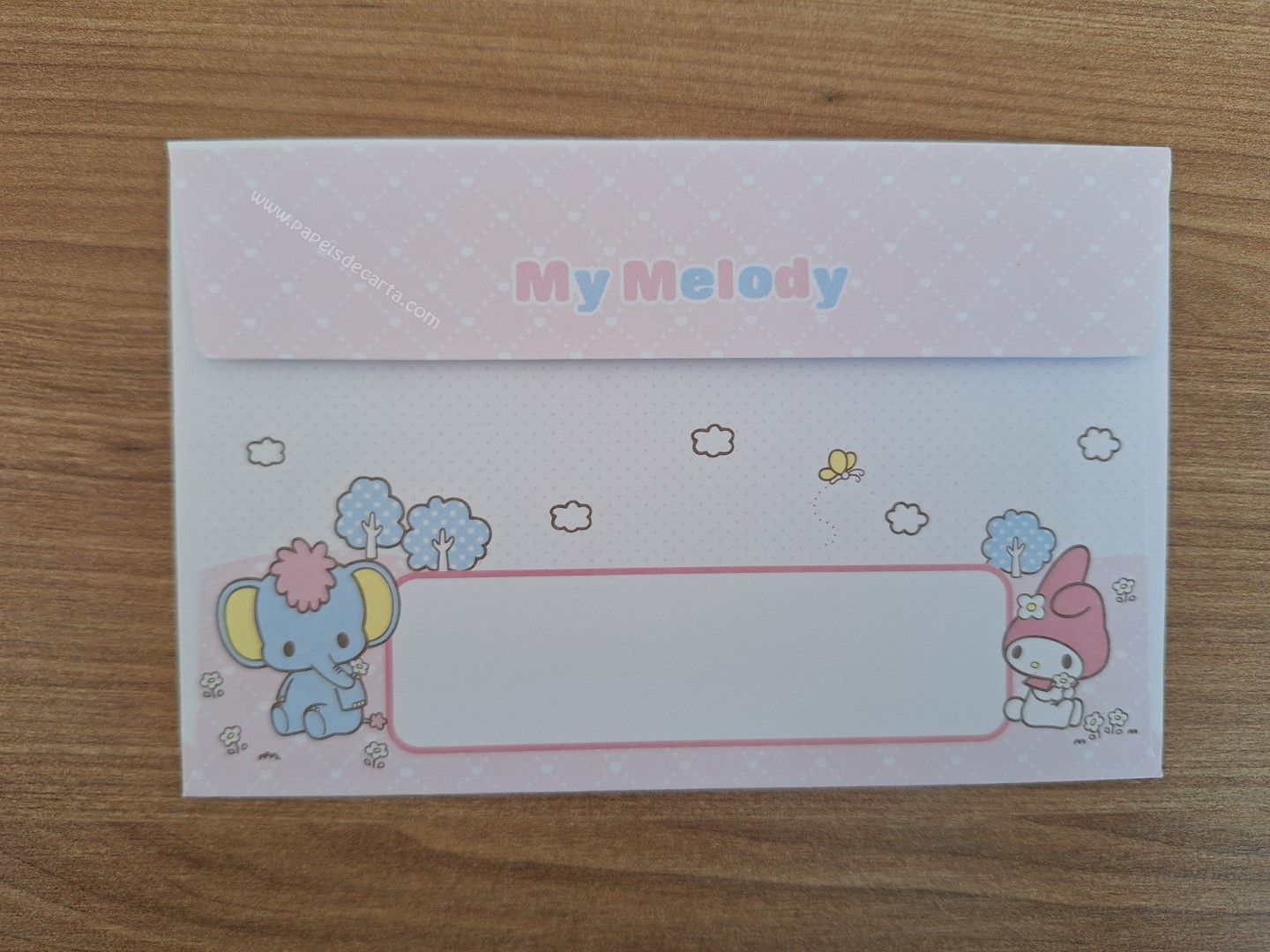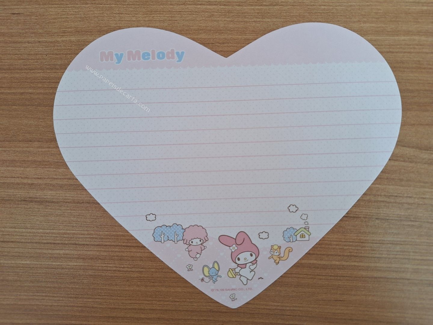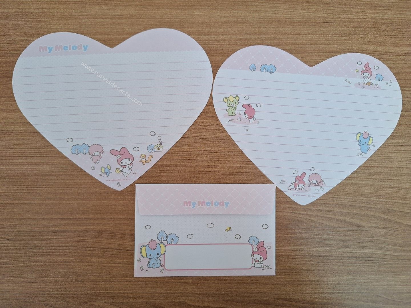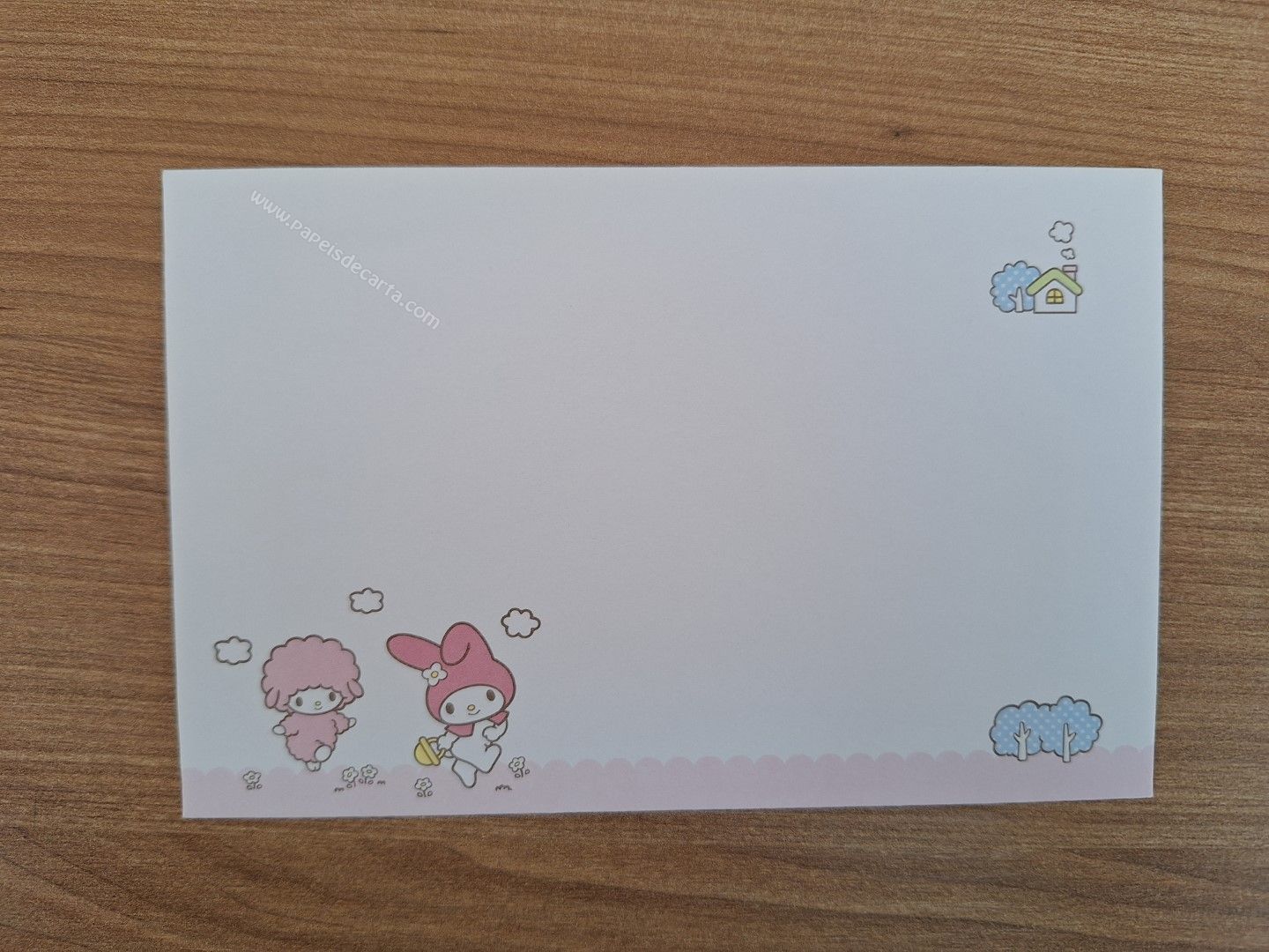 Papel de carta importado da My Melody com 2 folhas e 1 envelope.