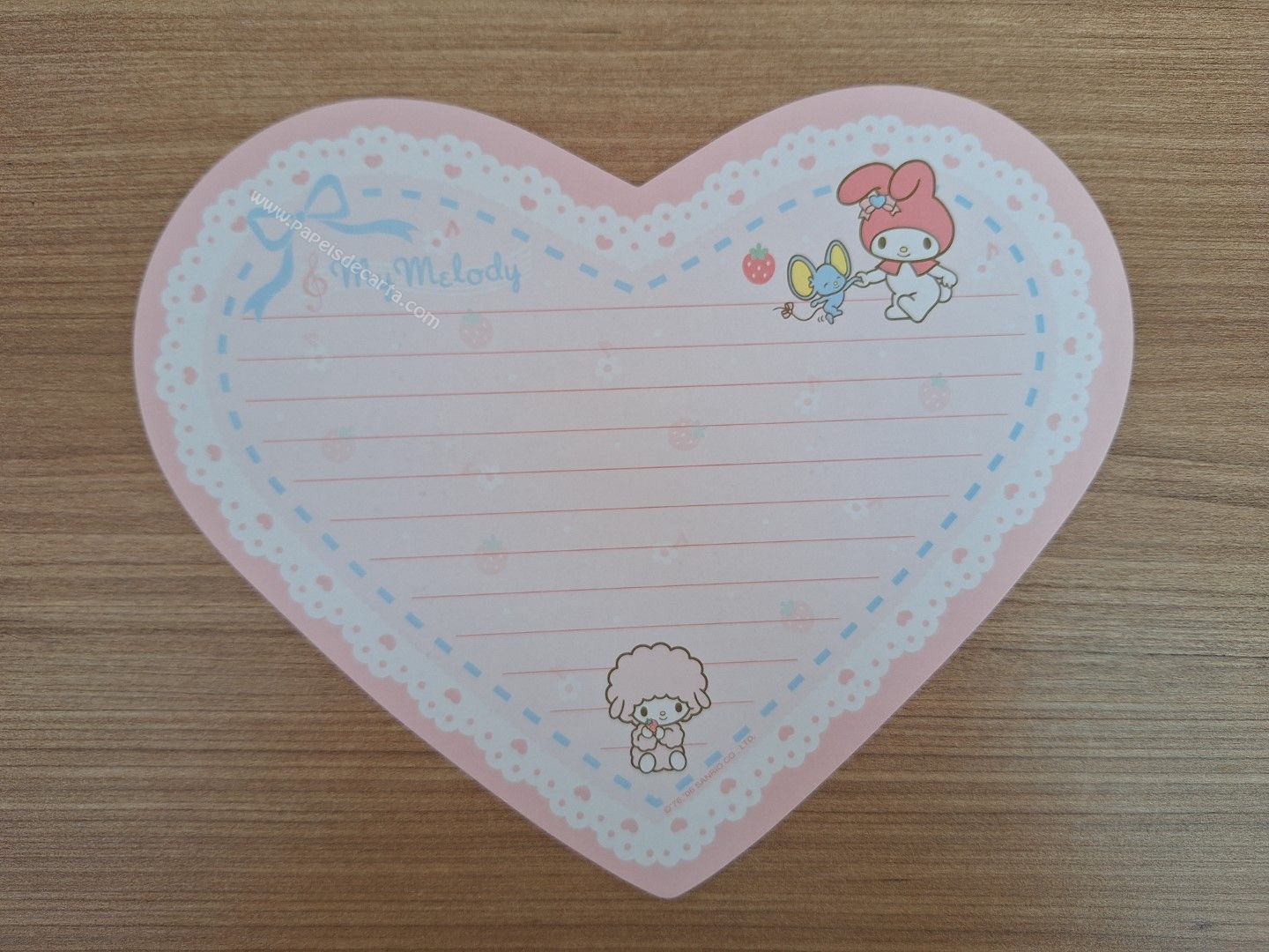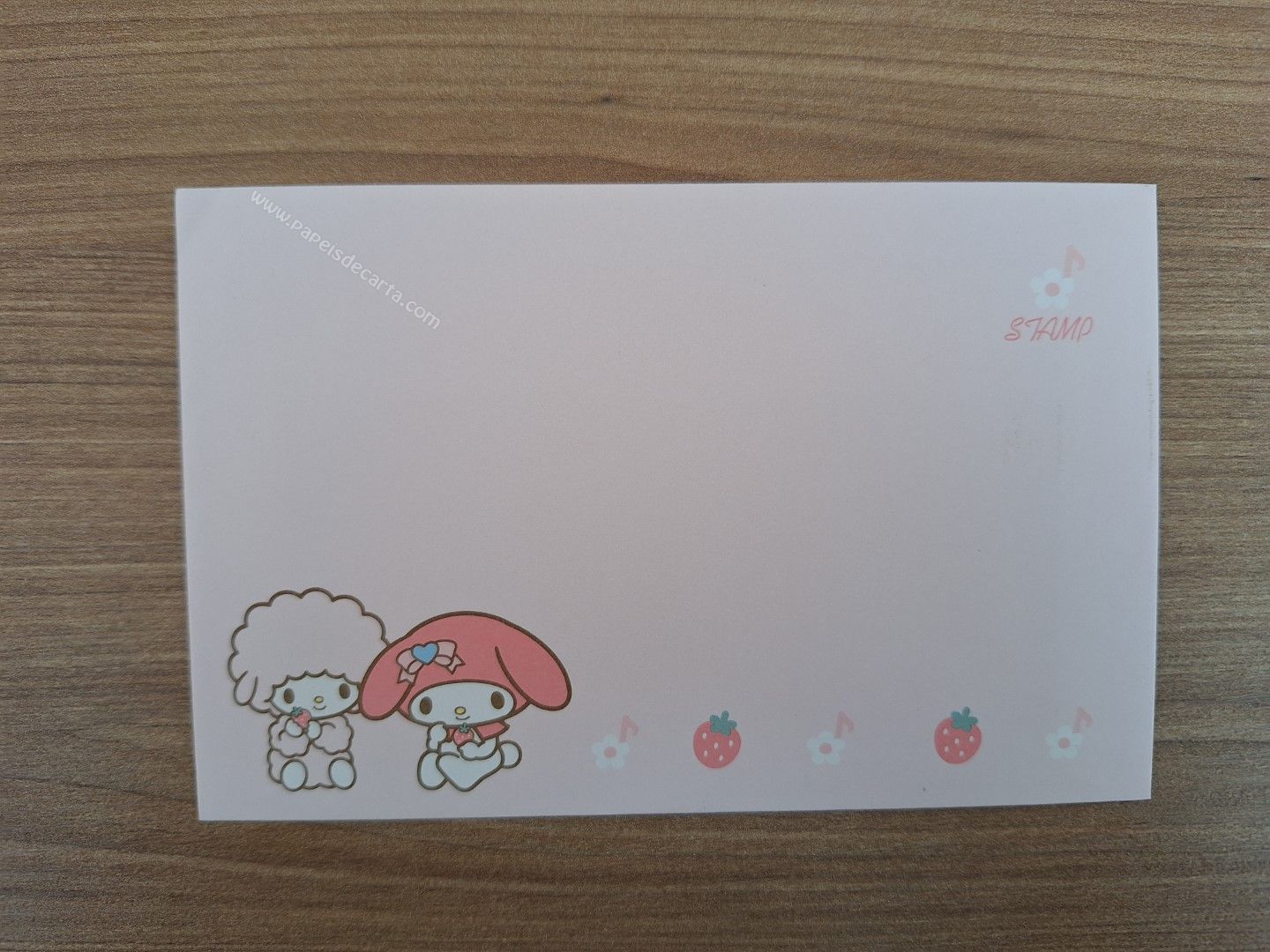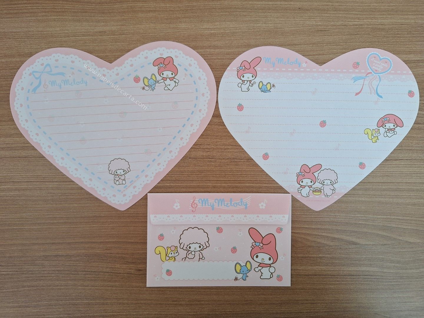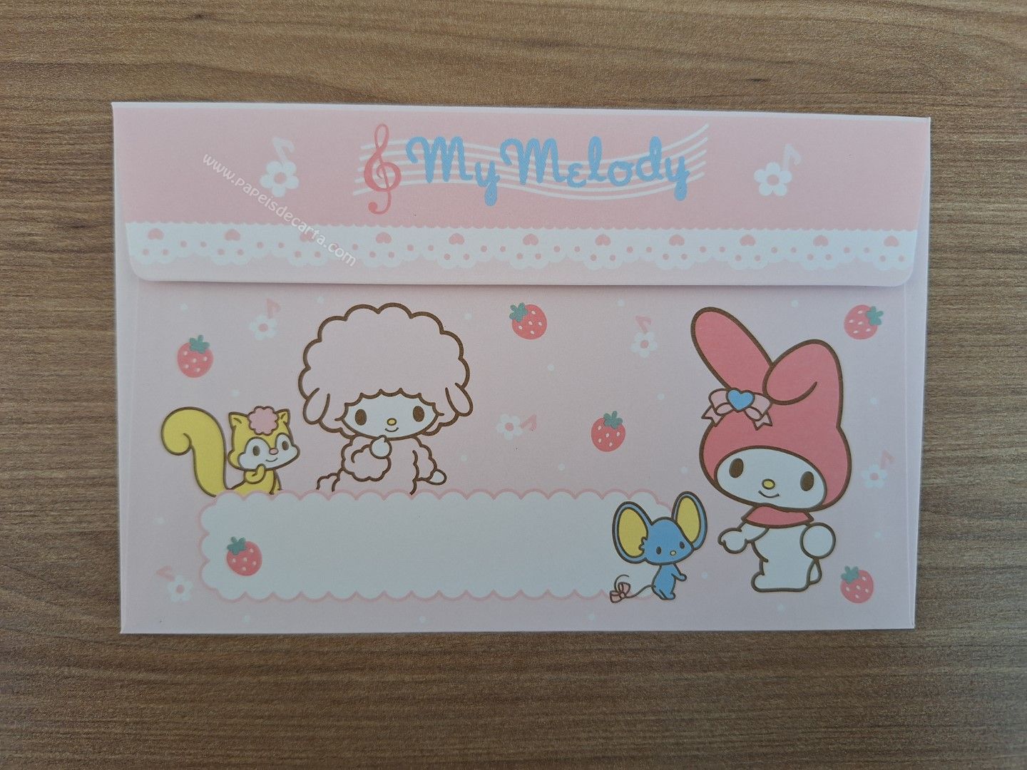 Papel de carta importado da My Melody com 2 folhas e 1 envelope.