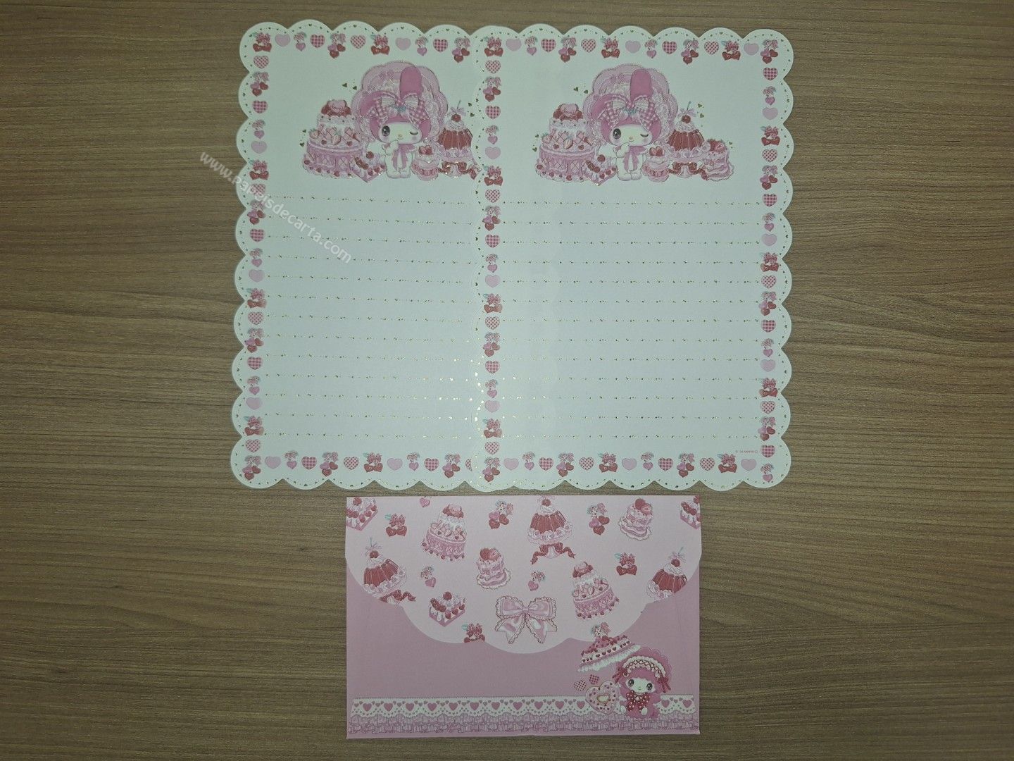 Papel de carta importado da My Melody com 2 folhas e 1 envelope. ** POSSUI DETALHES EM DOURADO.**