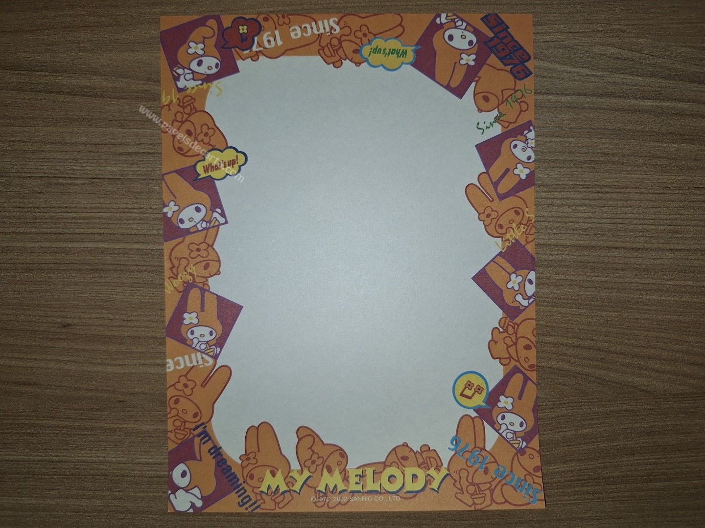 Papel de carta antigo da My Melody com 1 folha. Tamanho médio: larg:14,4cm x 19cm.
