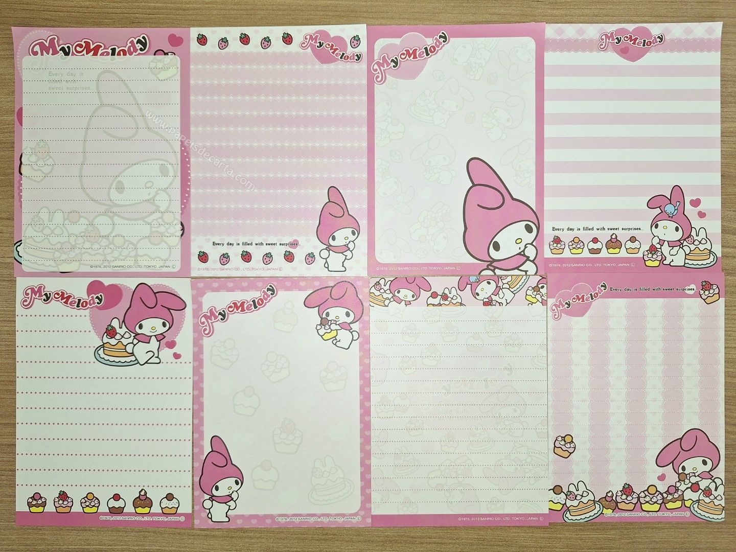 Conjunto de papel de carta importado, tamanho pequeno com 8 modelos diferentes da My Melody.