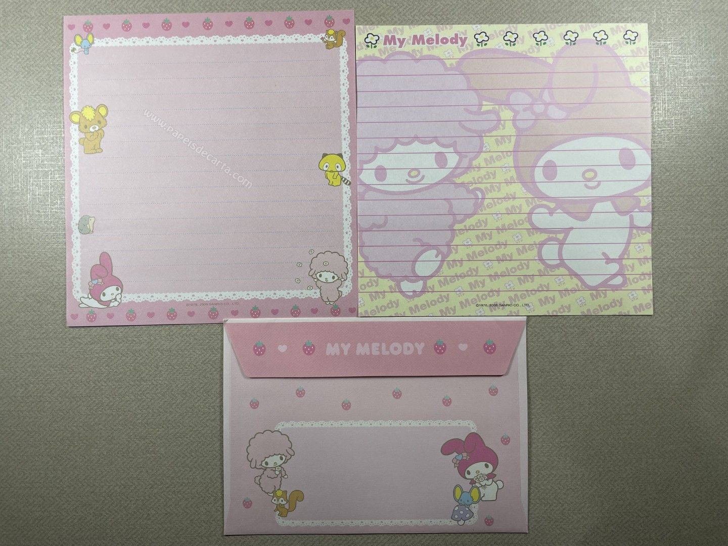 Conjunto de Papel de carta importado da My Melody com 2 folhas, 1 envelope. Tamanho médio.