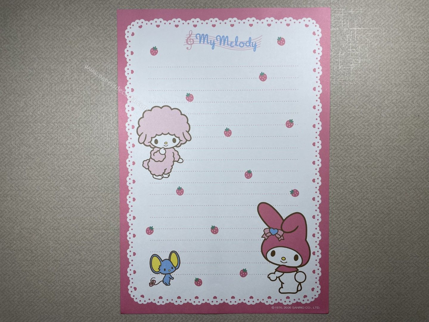 Papel de carta antigo da My Melody com 1 folha.