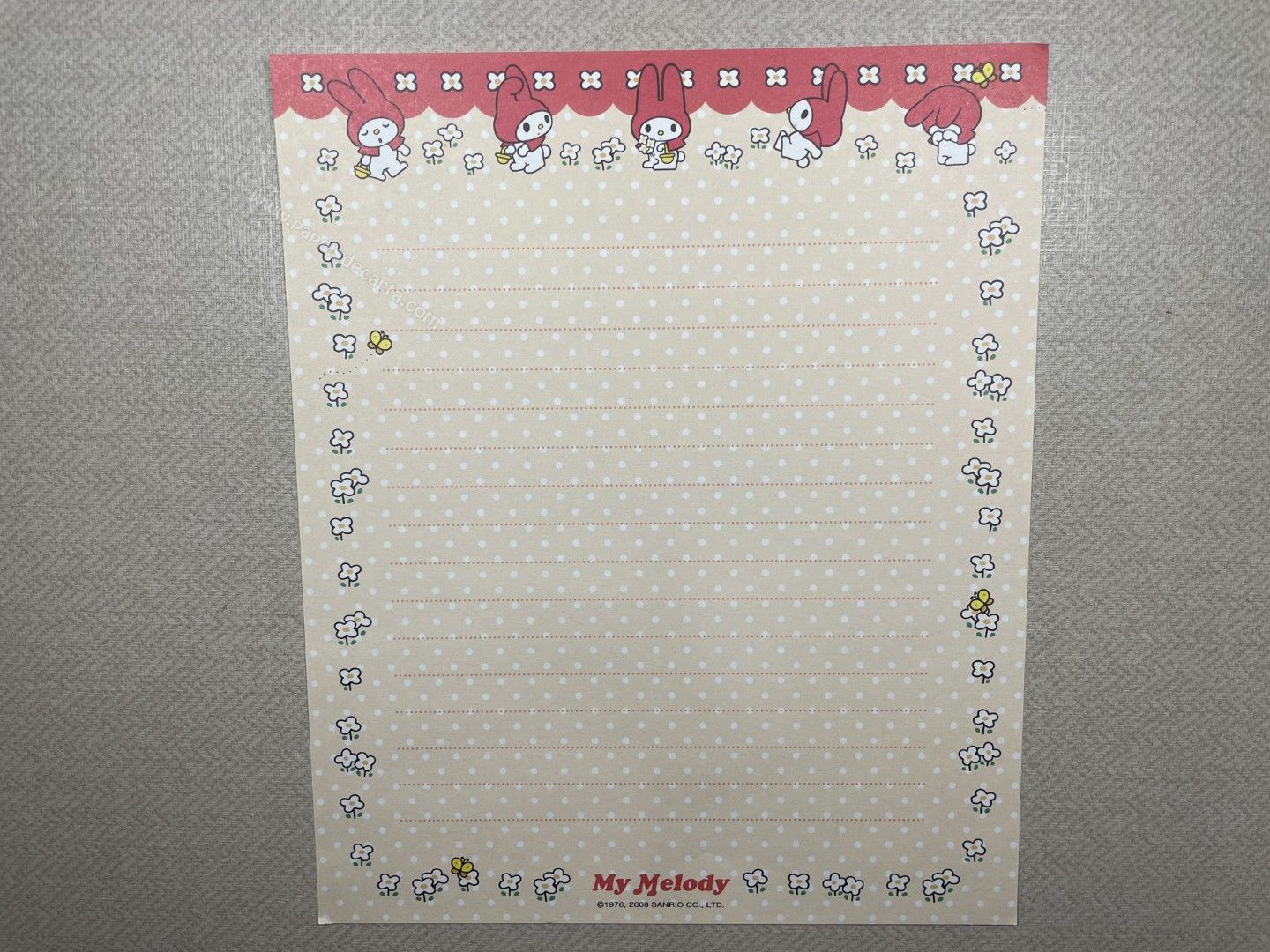 Papel de carta antigo da My Melody com 1 folha.