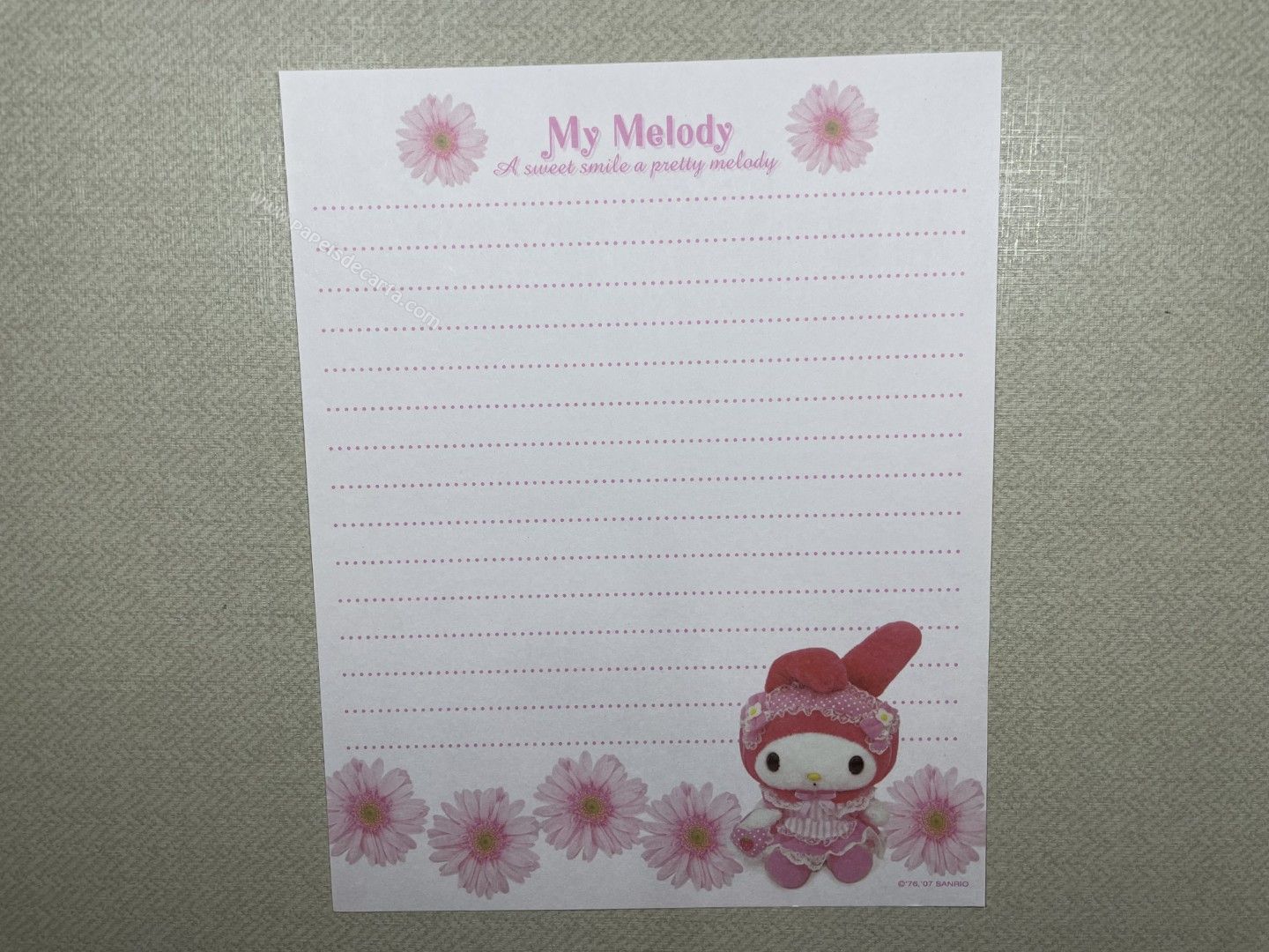 Papel de carta antigo da My Melody com 1 folha.