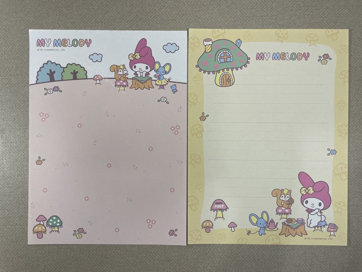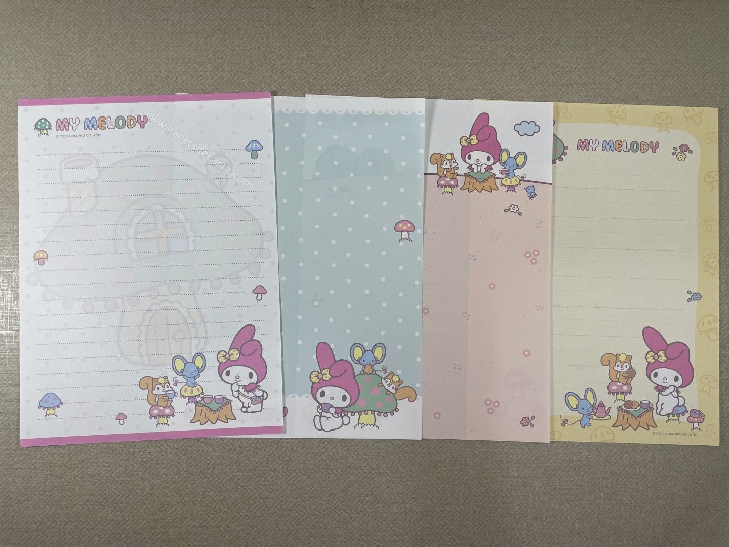 Lote de Papel de carta importado da My Melody com 4 folhas diferentes, tamanho médio.