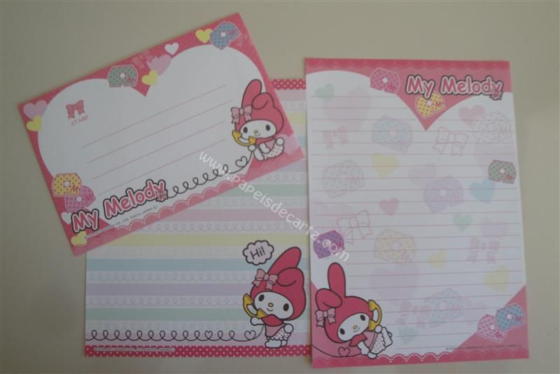 Conjunto importado, de papel de carta com 2 folhas diferentes e 1 envelope da My Melody.