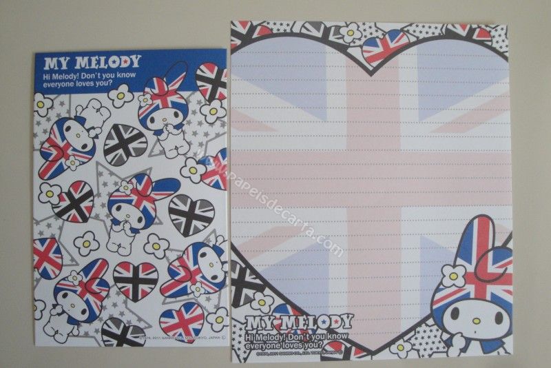 Conjunto importado, de papel de carta com 1 folha e 1 envelope da My Melody.