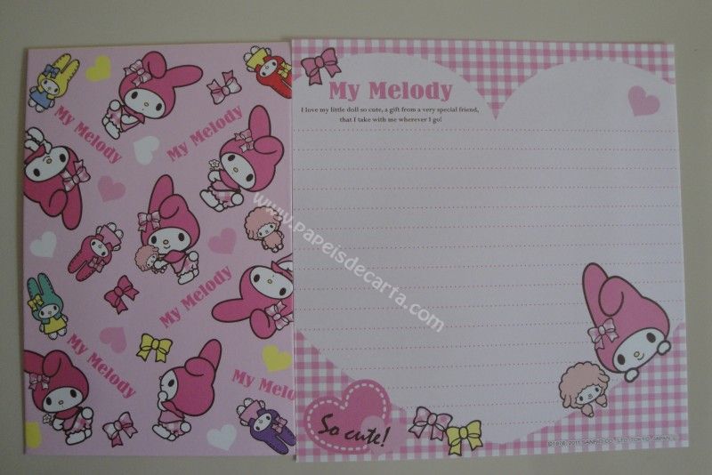 Conjunto importado, de papel de carta com 1 folha e 1 envelope da My Melody.