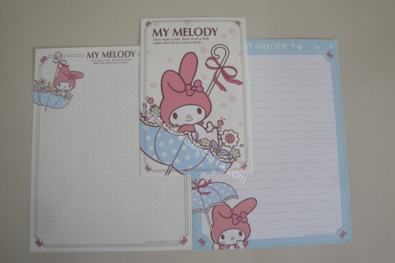 Conjunto importado, de papel de carta com 2 folhas diferentes e 1 envelope da My Melody.