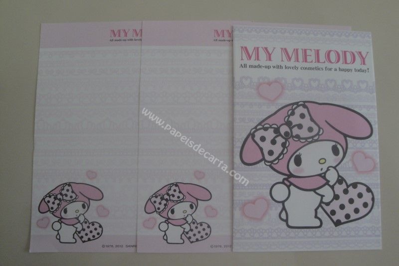 Conjunto de papel de carta importado, com 2 folhas iguais e 1 envelope da My Melody, da Sanrio.