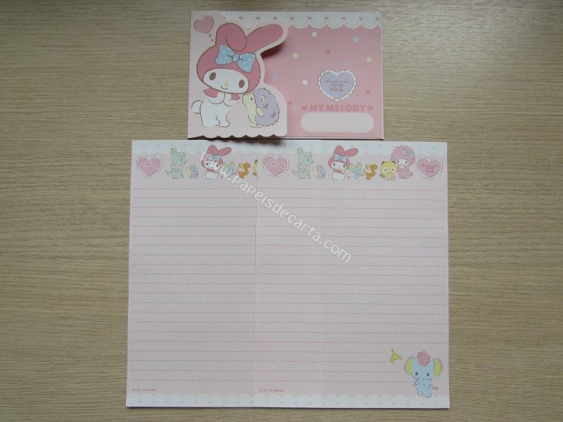Conjunto importado, de papel de carta da My Melody, com 2 folhas iguais e 1 envelope, da Sanrio. Fabricante: Sanrio