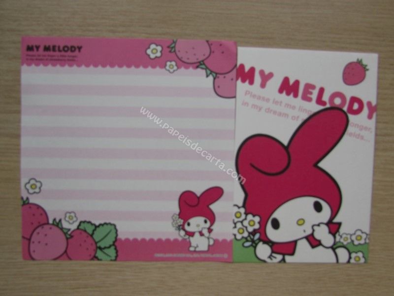 Conjunto importado, de papel de carta da My Melody, com 1 folha e 1 envelope, da Sanrio.