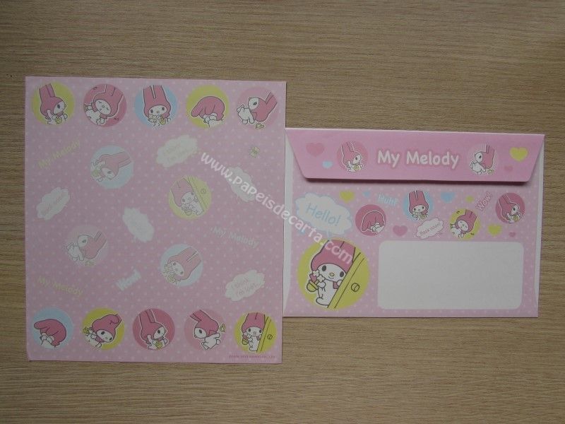 Conjunto importado, de papel de carta da My Melody, com 1 folha e 1 envelope, da Sanrio.