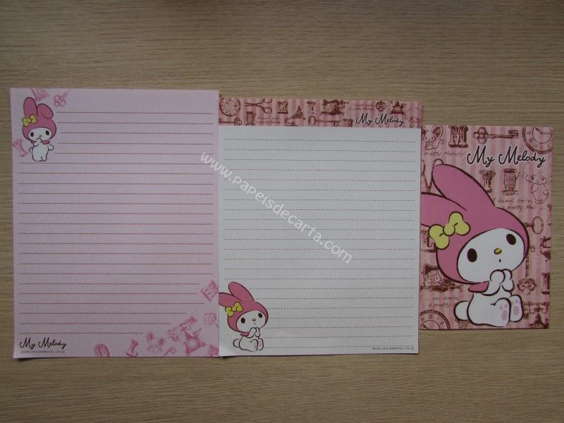 Conjunto importado, de papel de carta da My Melody, com 2 folhas diferentes 1 envelope, da Sanrio.