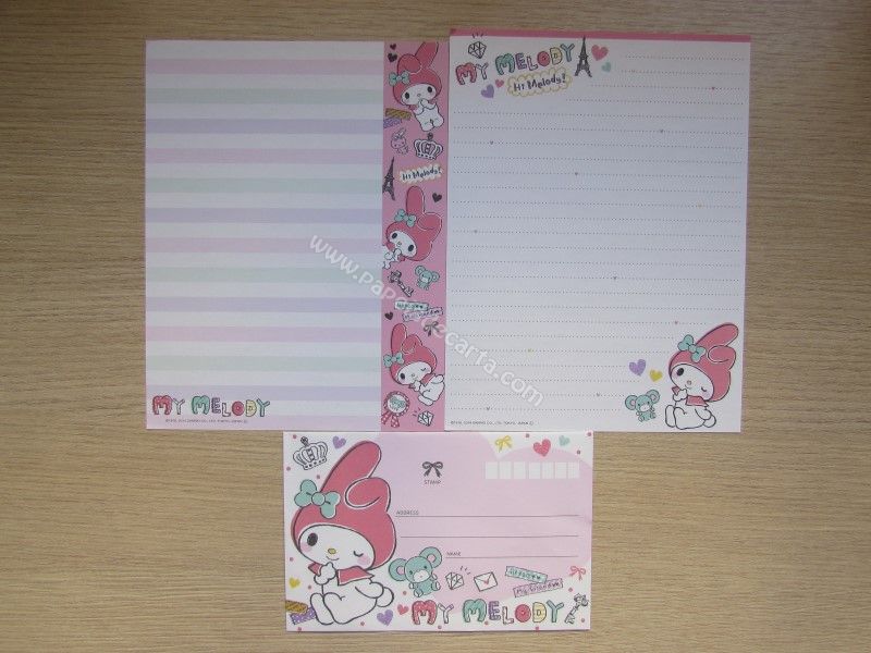 Conjunto com 2 folhas e 1 envelope da My Melody 157