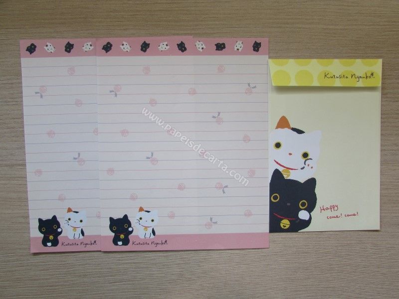 Conjunto de papel de carta importado com 2 folhas iguais e 1 envelope, da Katusita Nyanko, San-X