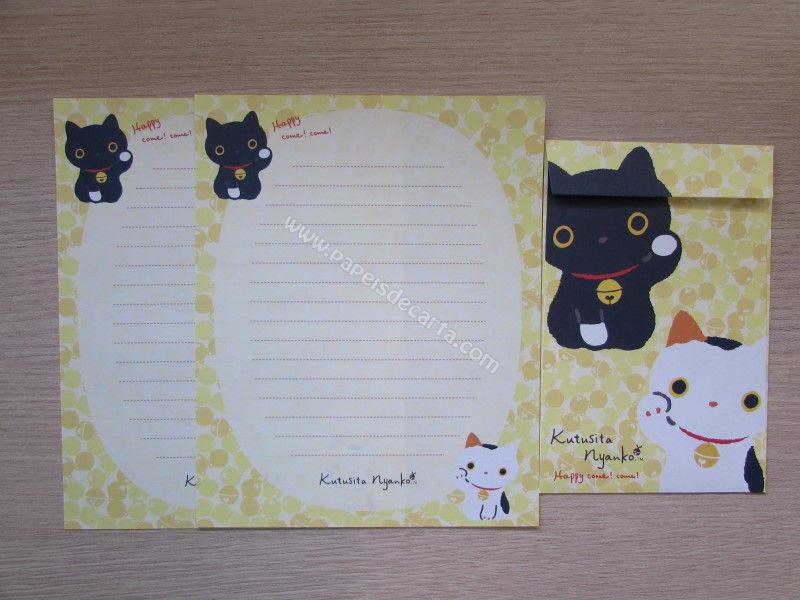 Conjunto de papel de carta importado com 2 folhas iguais e 1 envelope, da Katusita Nyanko, San-X