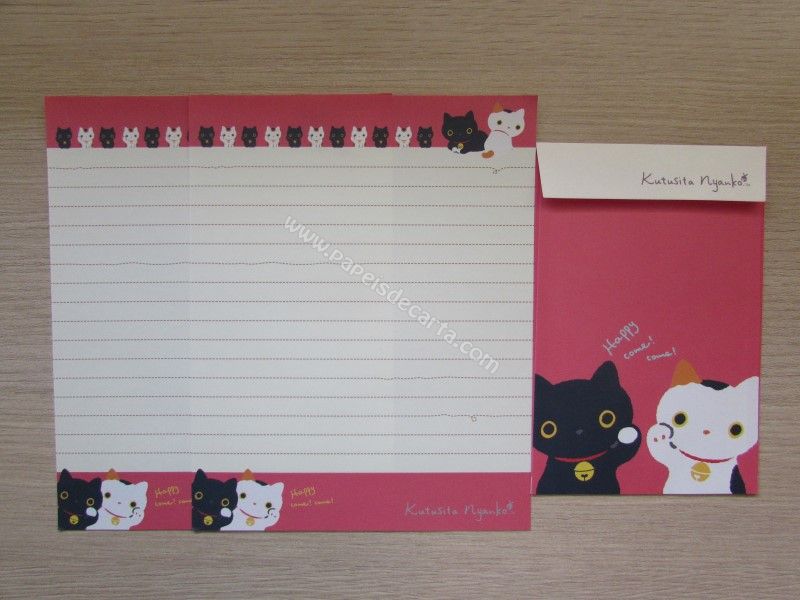 Conjunto de papel de carta importado com 2 folhas iguais e 1 envelope, da Katusita Nyanko, San-X