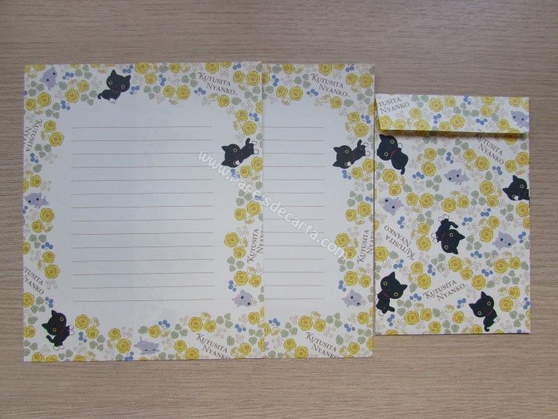 Conjunto de papel de carta importado com 2 folhas iguais e 1 envelope, da Katusita Nyanko, San-X