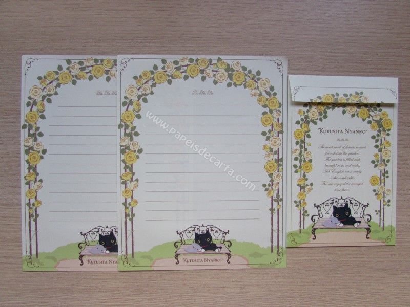 Conjunto de papel de carta importado com 2 folhas iguais e 1 envelope, da Katusita Nyanko, San-X
