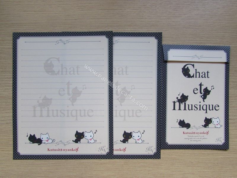 Conjunto de papel de carta importado com 2 folhas iguais e 1 envelope, da Katusita Nyanko, San-X