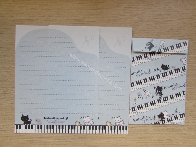 Conjunto de papel de carta importado com 2 folhas iguais e 1 envelope, da Katusita Nyanko, San-X