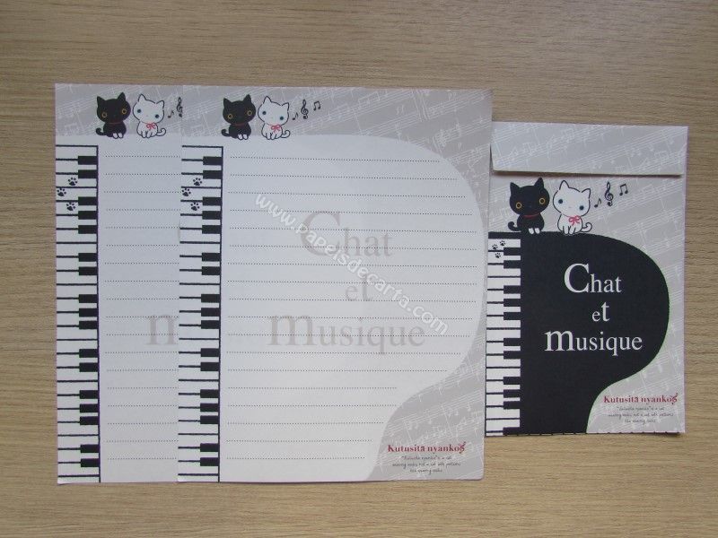 Conjunto de papel de carta importado com 2 folhas iguais e 1 envelope, da Katusita Nyanko, San-X