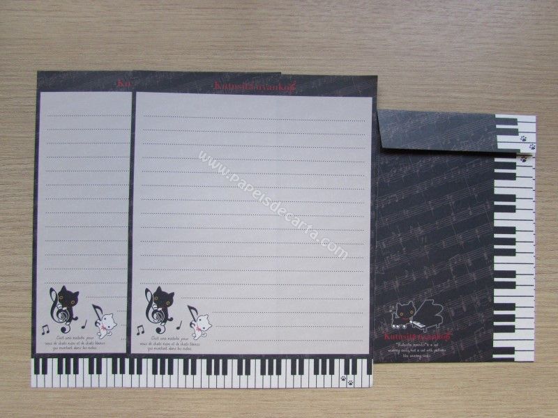 Conjunto de papel de carta importado com 2 folhas iguais e 1 envelope, da Katusita Nyanko, San-X