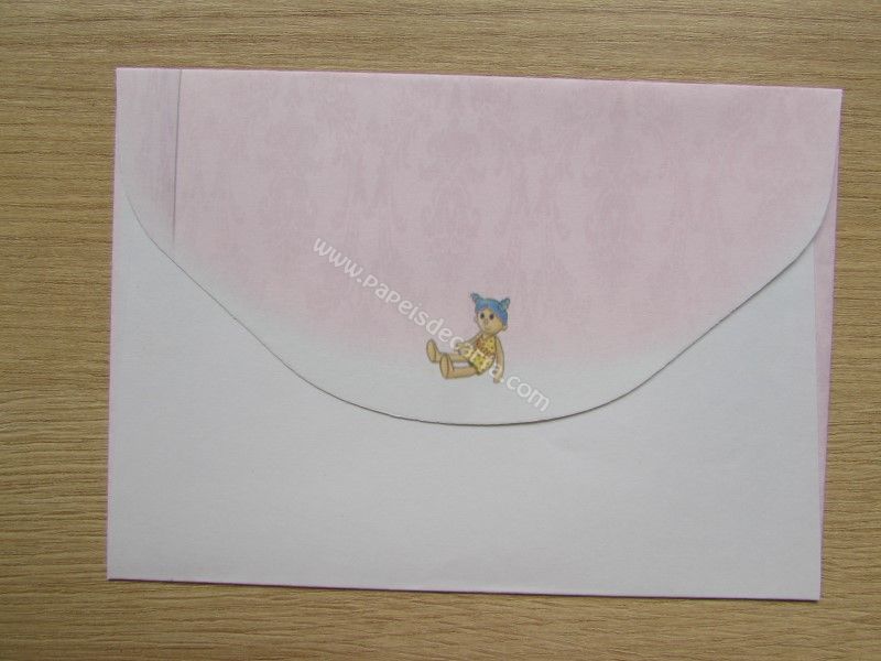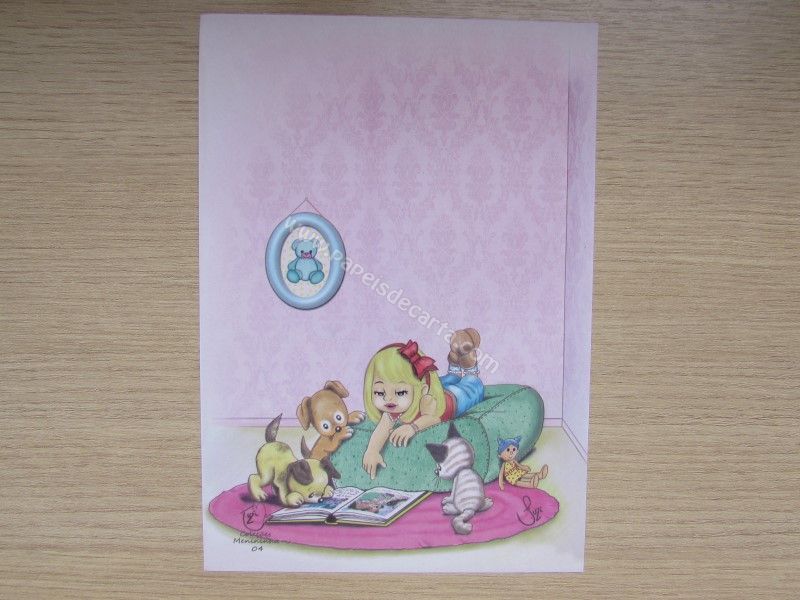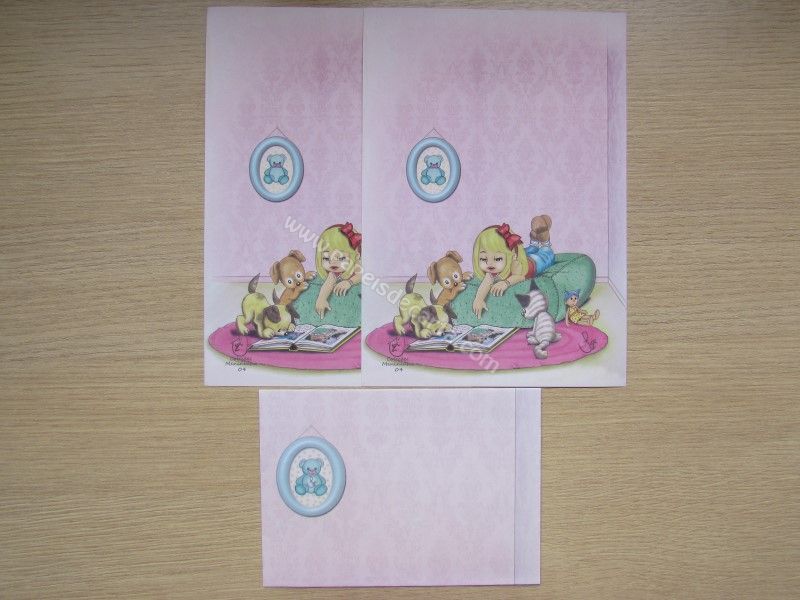 Conjunto de papel de carta com 2 folhas iguais e um envelope, da Coleção Menininha 04, criado pela Má Tuzi.