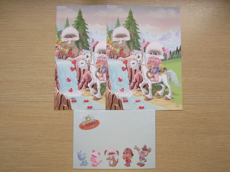 Conjunto de papel de carta com 2 folhas iguais e um envelope, da Coleção Pets 02, criado pela Má Tuzi.