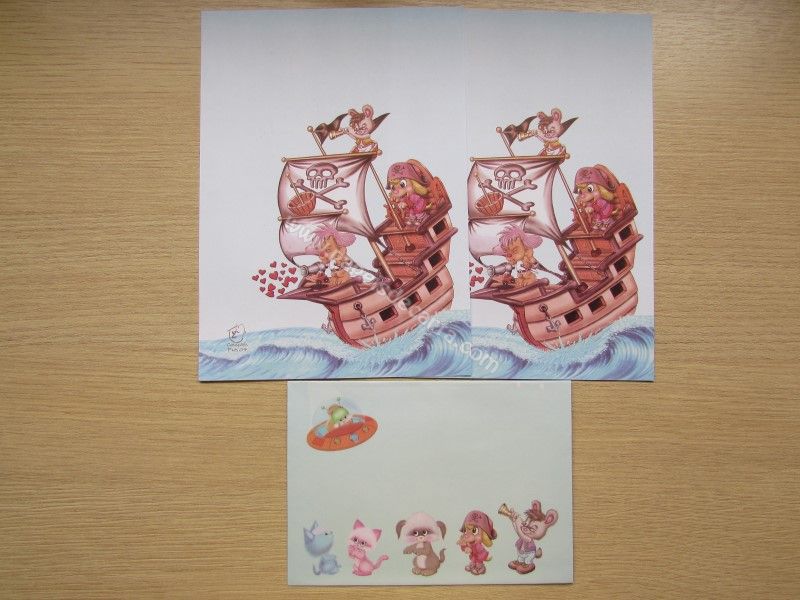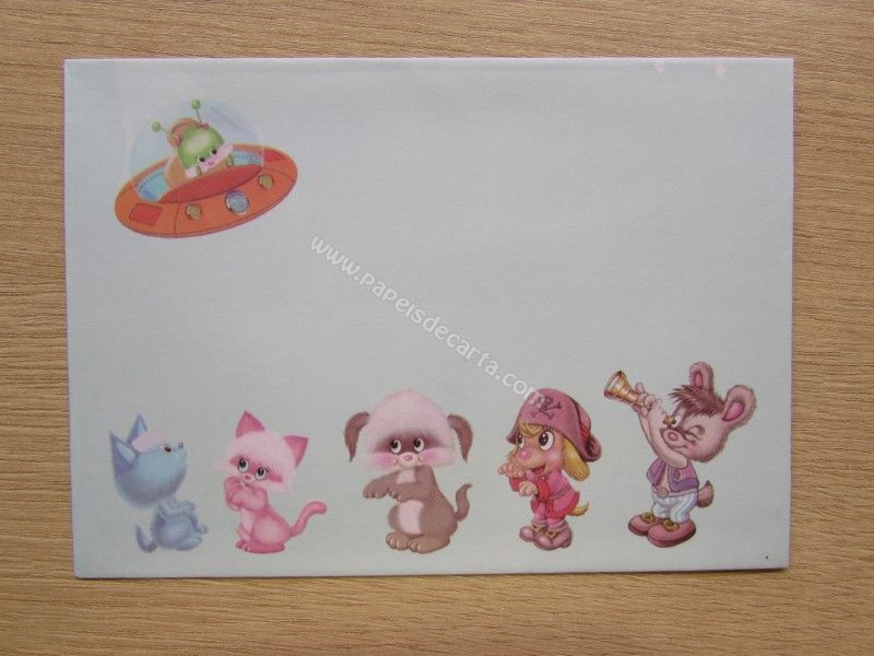 Conjunto de papel de carta com 2 folhas iguais e um envelope, da Coleção Pets 04, criado pela Má Tuzi.