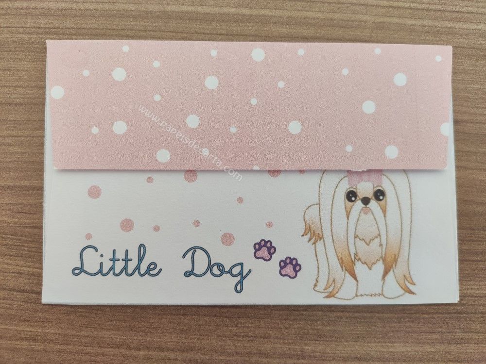 Conjunto de papel de carta com 1 folha e 1 envelope da Coleção Little Dog, tamanho médio. Ilustradora Bia Ragnarok.