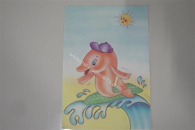 Papel de carta antigo, raro, tamanho médio, Álvaro de Sousa, com um golfinho surfando.