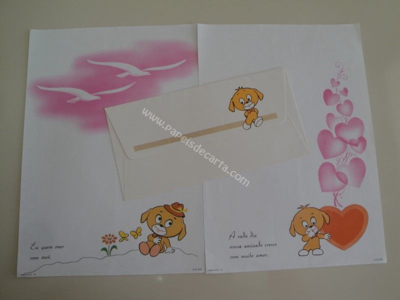 Conjunto de papel de carta antigo, tamanho médio, da coleção Ambrosiana, com duas folhas diferentes e um envelope. Numeração das folhas: 03 e 04 (6-41/051). Frase: Escrever para você é sempre uma grata surpresa!